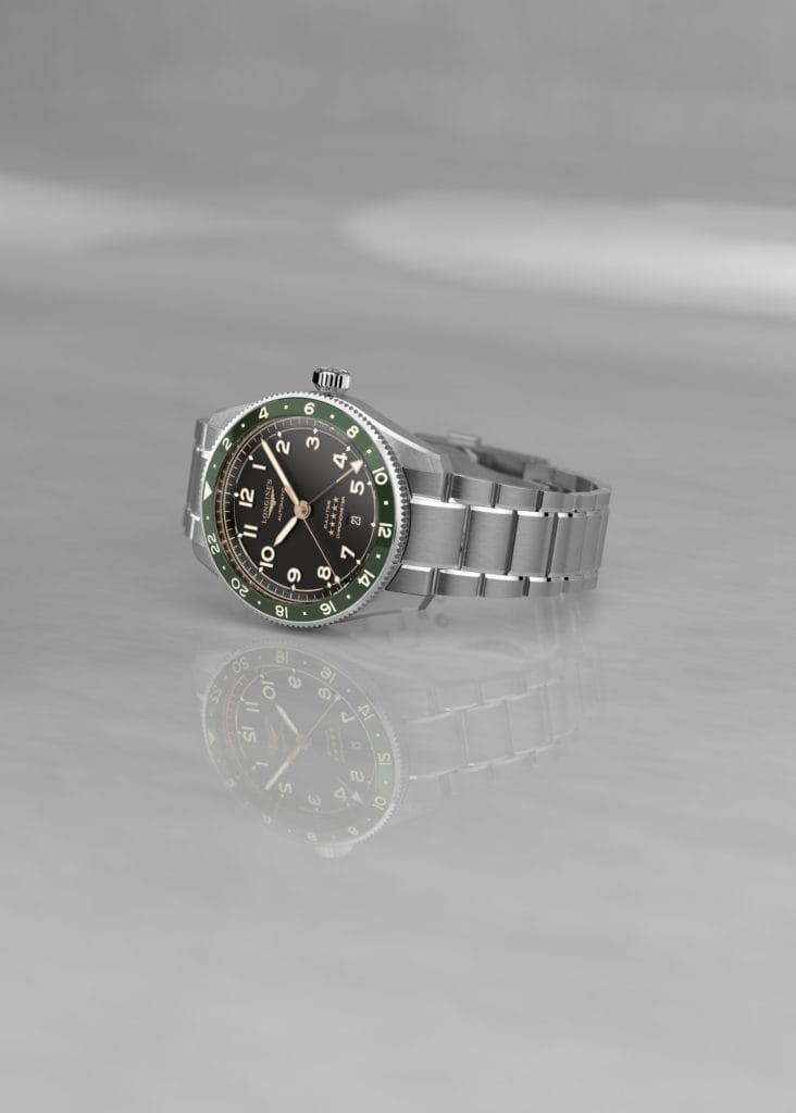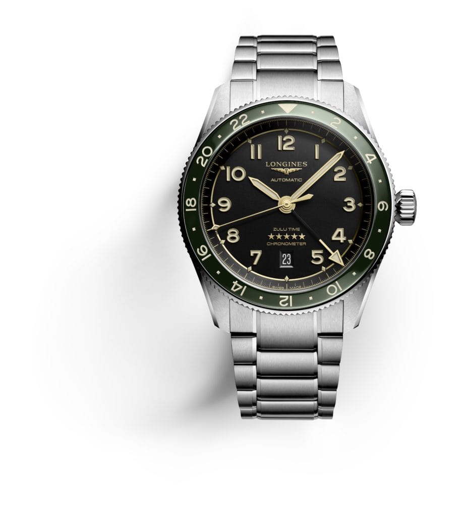 Longines jouit de plus d’un siècle d’expertise dans le développement de montres à plusieurs fuseaux horaires. En 1908, les horlogers de la marque présentent la première montre de poche Longines affichant deux fuseaux horaires. Elle est destinée à l’Empire ottoman (devenu aujourd’hui la Turquie). Cette montre possède un double affichage des heures et des minutes, ce qui permet d’indiquer sur un même cadran l’heure en Turquie et l’heure en France. Longines dépose un premier brevet pour cette technologie en 1911 (« Montre turque à deux tours d’heures»), puis un second en 1918 (« Montre à double cadran »). En 1931, la marque développe une horloge de bord spéciale pour l’Américain Clyde Pangborn, le premier pilote à relier le Japon aux Etats-Unis sans escale. Cet instrument présente des doubles aiguilles – qui indiquent les heures et les minutes – aisni que deux cadrans 24 heures concentriques. La famille des horloges de bord s’enrichira par la suite d’une montre dotée de deux cadrans 12 heures et de doubles aiguilles. Afin de répondre aux attentes des pilotes, Longines modifie en 1933 une imposante montre Weems de 47 mm et l’équipe d’un deuxième jeu d’aiguilles des heures et des minutes. La Longines Spirit Zulu Time écrit un nouveau chapitre de notre riche histoire d’instruments polyvalents destinés aux pilotes et aux voyageurs.