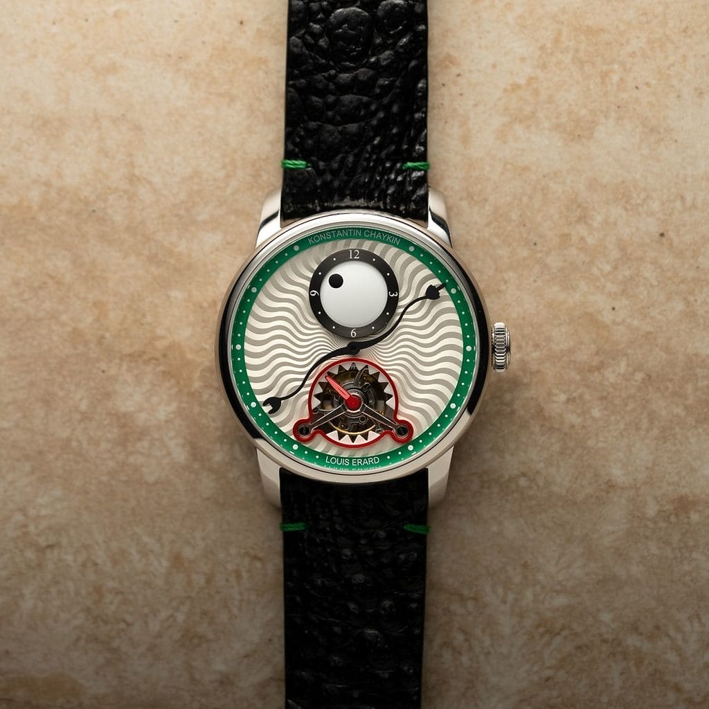 L’arrivée du tourbillon était inévitable. Mais cette fois, il ne s’est pas contenté de s’installer discrètement. Il s’est affiché en souriant. Pour Chaykin, cette complication n’est pas un détail. C’est une signature. Il a été le premier à créer des tourbillons en Russie. Et en 2021, il a battu tous les records avec le Tourbillon Martien, montre russe la plus chère jamais vendue. Chaykin ne fabrique pas simplement des montres. Il donne vie à des créatures.
