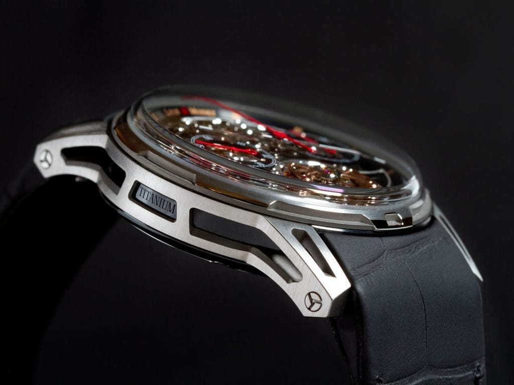L’IMPULSION TITANIUM ONYX se distingue par un boîtier en titane grade 5, composé de quatre éléments distincts. Son architecture ajourée allège la montre tout en affirmant un style résolument moderne. La glace bombée met en valeur la puissance du mouvement et facilite la lecture des indications.