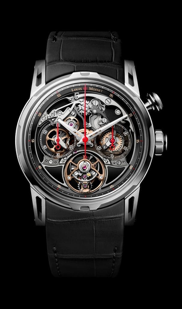 Abraham-Louis Breguet et Louis Moinet, deux figures légendaires de l’horlogerie, ont marqué l’histoire avec leurs inventions révolutionnaires : le tourbillon et le chronographe. Aujourd’hui, Les Ateliers Louis Moinet rendent hommage à cet héritage en fusionnant ces deux complications d’exception dans une création audacieuse et captivante.
