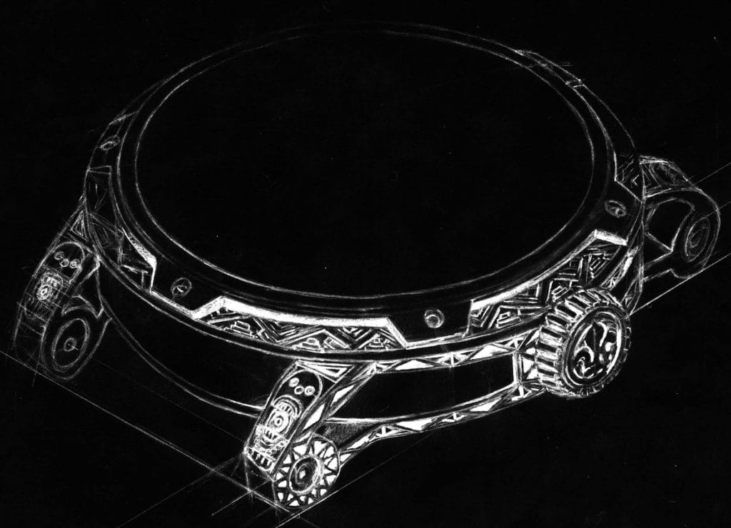 Carrure du boîtier : Frises géométriques précolombiennes