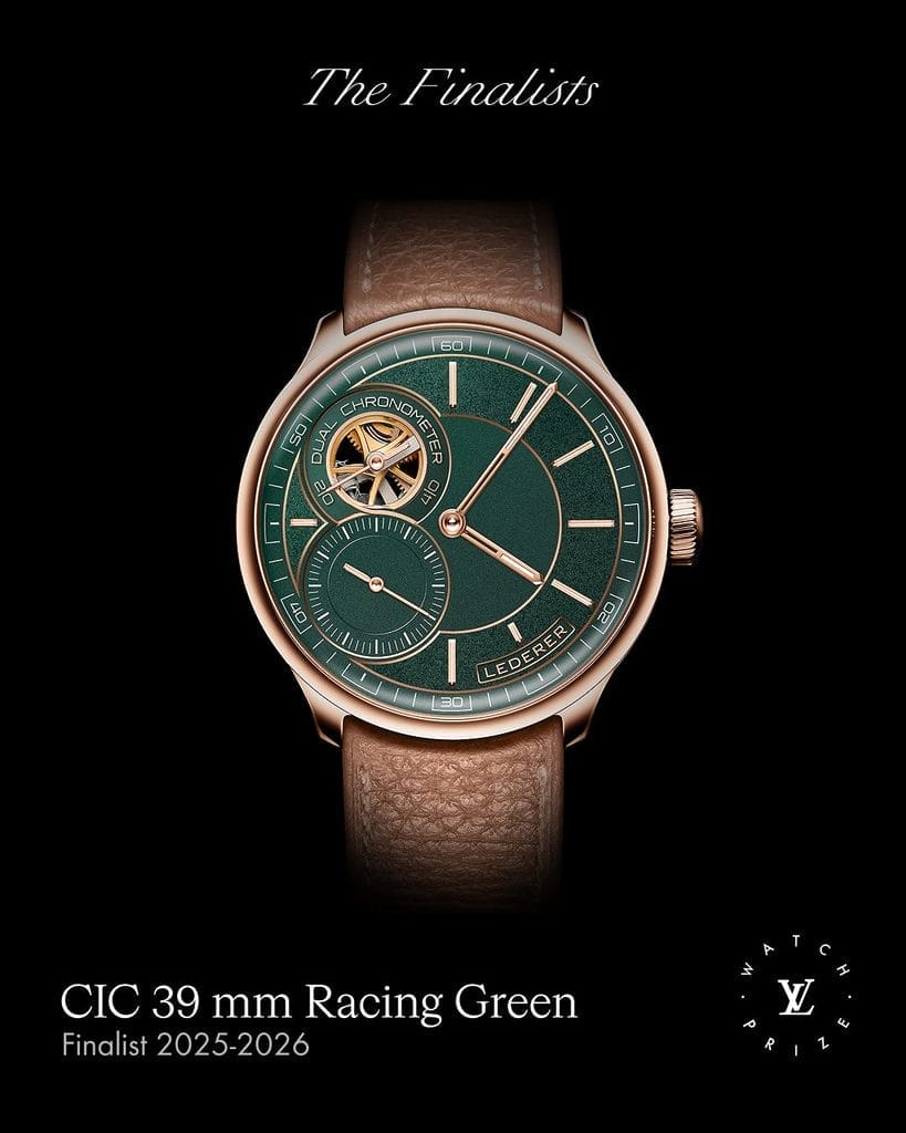 Figure emblématique de l’horlogerie indépendante, Bernhard Lederer présente une nouvelle variation de sa CIC 39 mm, habillée ici d’un élégant cadran Racing Green. Cette montre se distingue par le premier double échappement à détente entièrement fonctionnel dans une montre-bracelet.