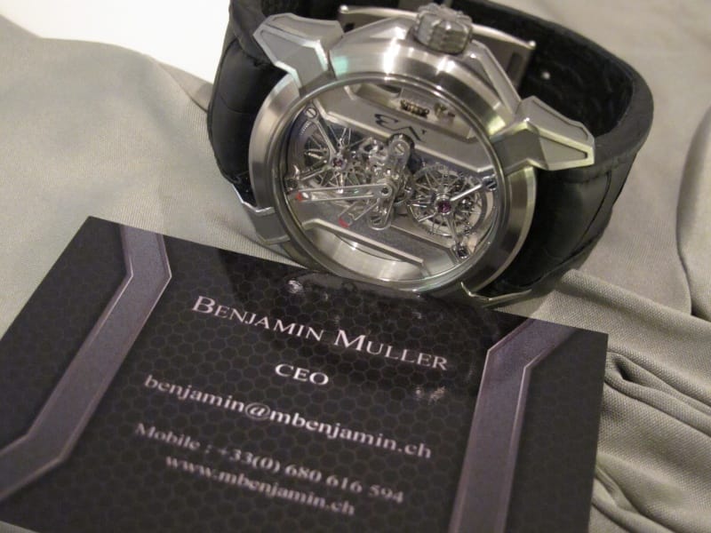 Specific development of a patented Tourbillon designed by Benjamin Muller.
