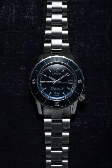 GITANA et MARCH LA.B ont associé leurs forces pour développer une montre marine à l’aise dans toutes les conditions de navigation : la BELZA GITANA. Une montre de 40 mm entraînée par un mouvement automatique suisse doté d’une réserve de marche de 68 Heures, étanche à 200 mètres et disponible en édition limitée dans deux versions, bronze rose ou acier.
