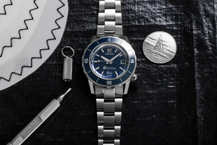 GITANA et MARCH LA.B ont associé leurs forces pour développer une montre marine à l’aise dans toutes les conditions de navigation : la BELZA GITANA. Une montre de 40 mm entraînée par un mouvement automatique suisse doté d’une réserve de marche de 68 Heures, étanche à 200 mètres et disponible en édition limitée dans deux versions, bronze rose ou acier.