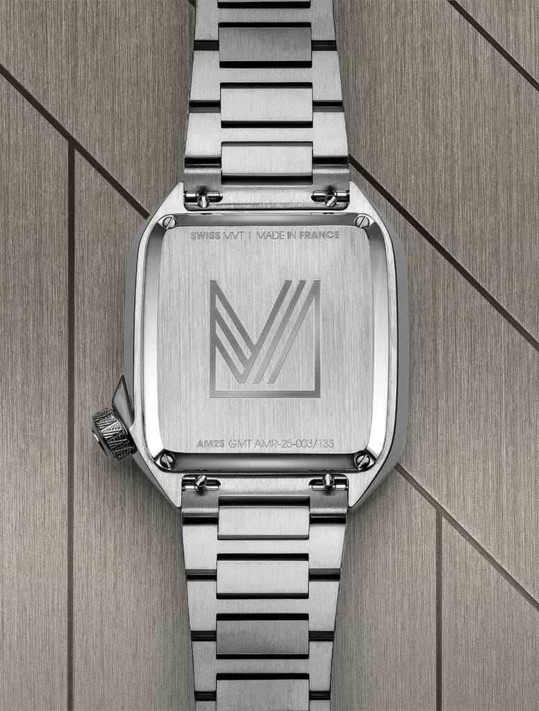 Son verre saphir bombé a été abaissé de 0,9 mm pour affiner l’ensemble, atteignant une épaisseur totale de 12,5 mm. L’AM2 Slim GMT Titane « Millésime Mars 2025 » incarne l’harmonie parfaite : une esthétique équilibrée, une carrure adaptée à tous les poignets et une fonctionnalité qui fait rêver.