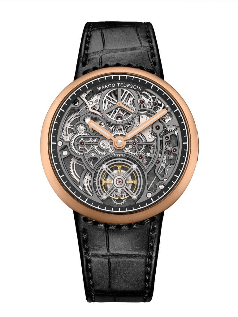 Quatre étapes majeures jalonnent ce parcours : en 2006, la création du Tourbillon Central, point de départ de l’aventure ; en 2020, la fondation de KROSS MANUFACTURE et KROSS STUDIO, qui posent les bases industrielles et collaboratives ; en 2023, le brevet du Tourbillon Central Flottant ; et enfin en 2026, le lancement officiel de la marque MARCO TEDESCHI lors de Watches & Wonders, accompagné de la présentation de la MT1.1, révélant la pleine maturité de cet écosystème.