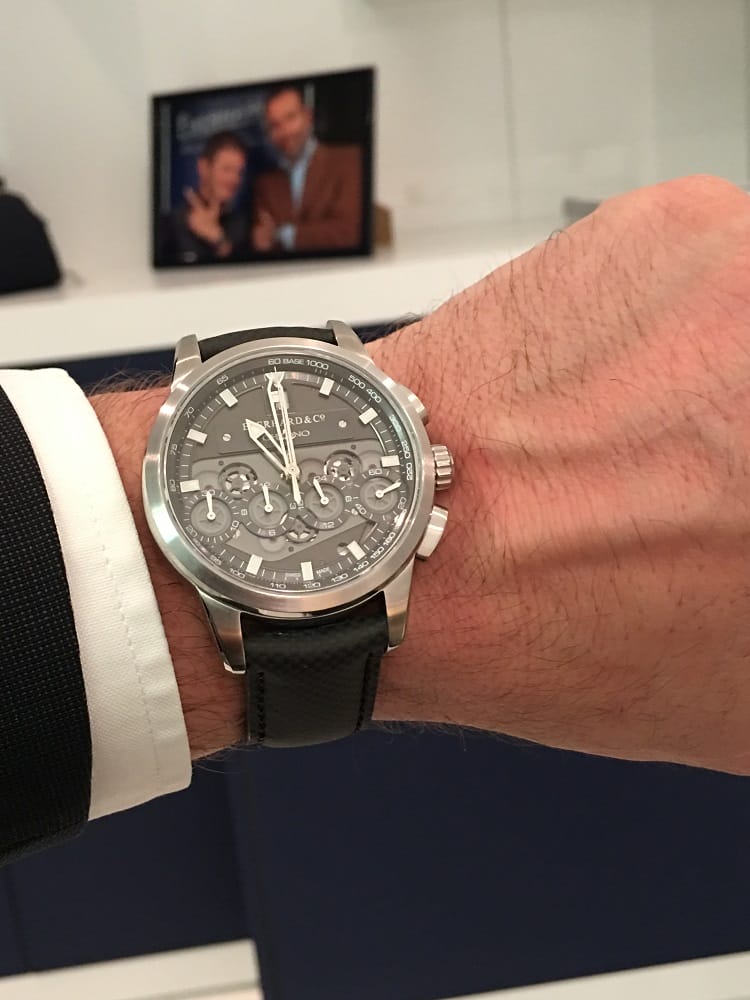 Il veille désormais à la destinée et au développement d’Eberhard & Co en compagnie de Barbara Monti, la propriétaire et héritière de son père, Palmiro Monti qui avait acquis cette maison en 1969, année du lancement des montres à Quartz. Ayant réussi à résister à la crise qui a succédé à cette mutation de l’industrie horlogère suisse, aujourd’hui c’est avec un fidèle et charismatique Mario Peserico à sa tête, qu’Eberhard & Co connaît le succès et engrange les récompenses. La marque de La Chaux de Fonds, lauréate du Grand Prix d’Horlogerie de Genève 2016 avec son Scafograf 300 à 2 500 CHF peut s’enorgueillir de produire des montres originales et reconnaissables entre toutes, avec une production honorable de 20 000 pièces par an. Le fruit d’un duo performant à la tête d’une entreprise qui sait prendre le temps d’évoluer avec son temps. Rencontre avec un homme dont la passion n’a d’égal que la sagesse.