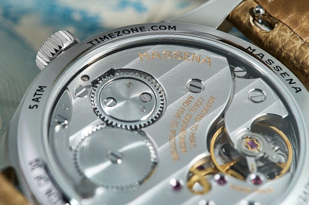 La disposition du cadran adopte une architecture de type observatoire, rendant hommage à la Patek Philippe référence 2458, une pièce unique créée en 1952 pour le collectionneur Joe Ben « J.B. » Champion Jr., une montre bien connue des lecteurs de longue date de TimeZone. La TZ30 est signée « Massena », avec une petite seconde positionnée à 9 heures, complétée par la mention « Observatory Precision » à 3 heures, créant une symétrie équilibrée et agréable à l’œil.