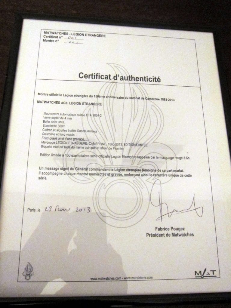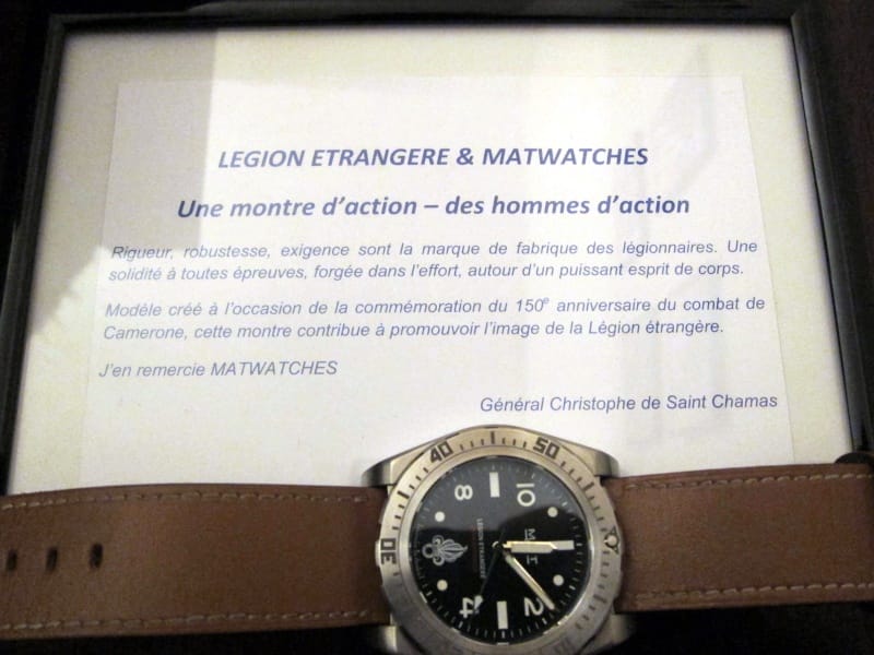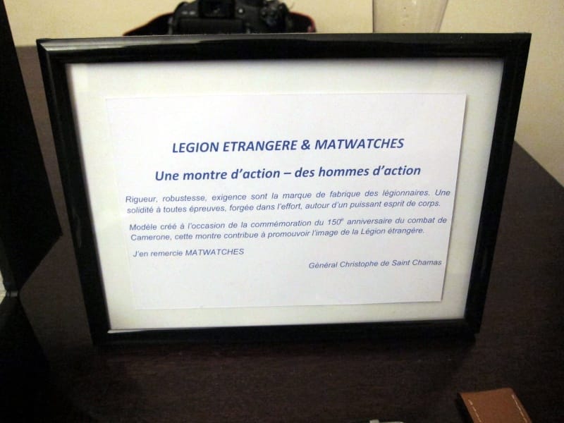 Hier avait lieu la présentation officielle à Paris, dans les bureaux de la société Matwatches, de la montre de la Légion Etrangère. A cette occasion Fabrice Pougez, fondateur de la marque, accueillait des représentants de cette honorable institution militaire qui, rappelons-le, est présente sur tous théâtres d’opération où la France est engagée. Passion Horlogère était représentée par nombre de ses membres qui vous livrent ici quelques photos exclusives.