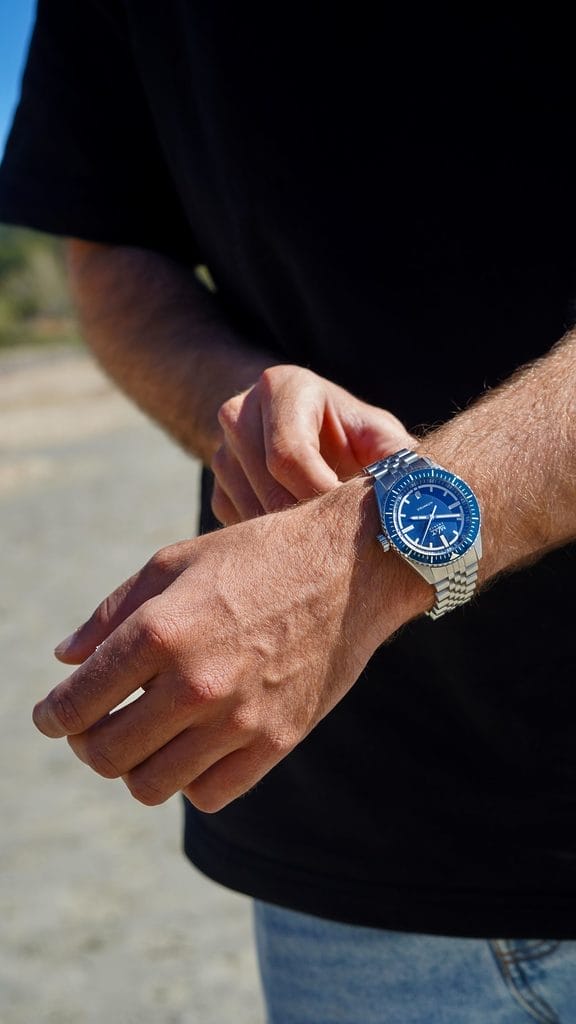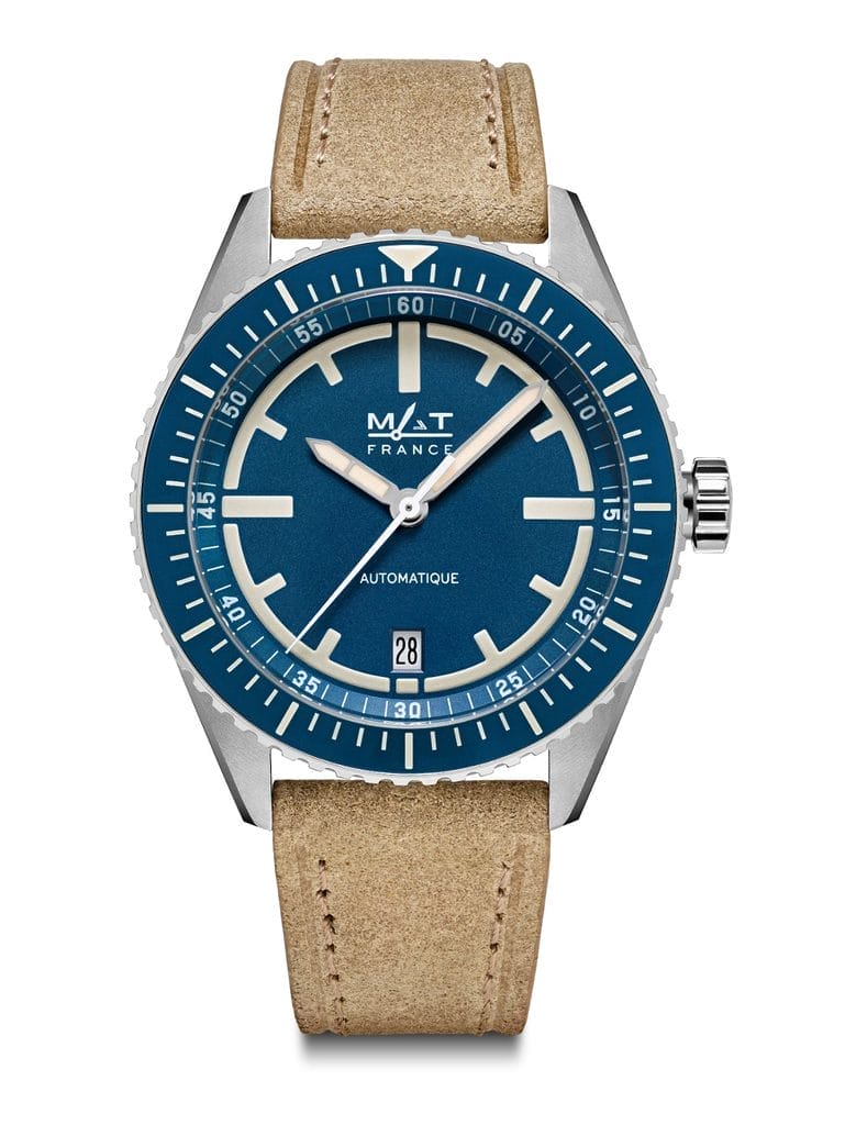 MATWATCHES propose également un jeu de trois bracelets interchangeables — acier style « Jubilee », caoutchouc Tropic texturé bleu et canvas bleu intense —, permettant d’adapter la montre à chaque moment de vie. Un bracelet cuir sable est également disponible en option, renforçant son caractère versatile.
