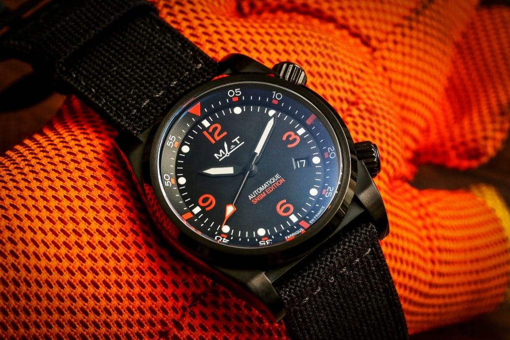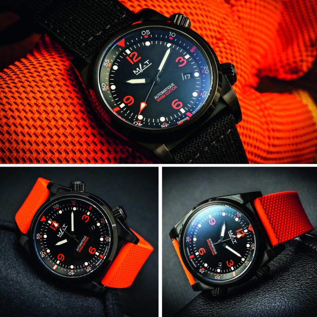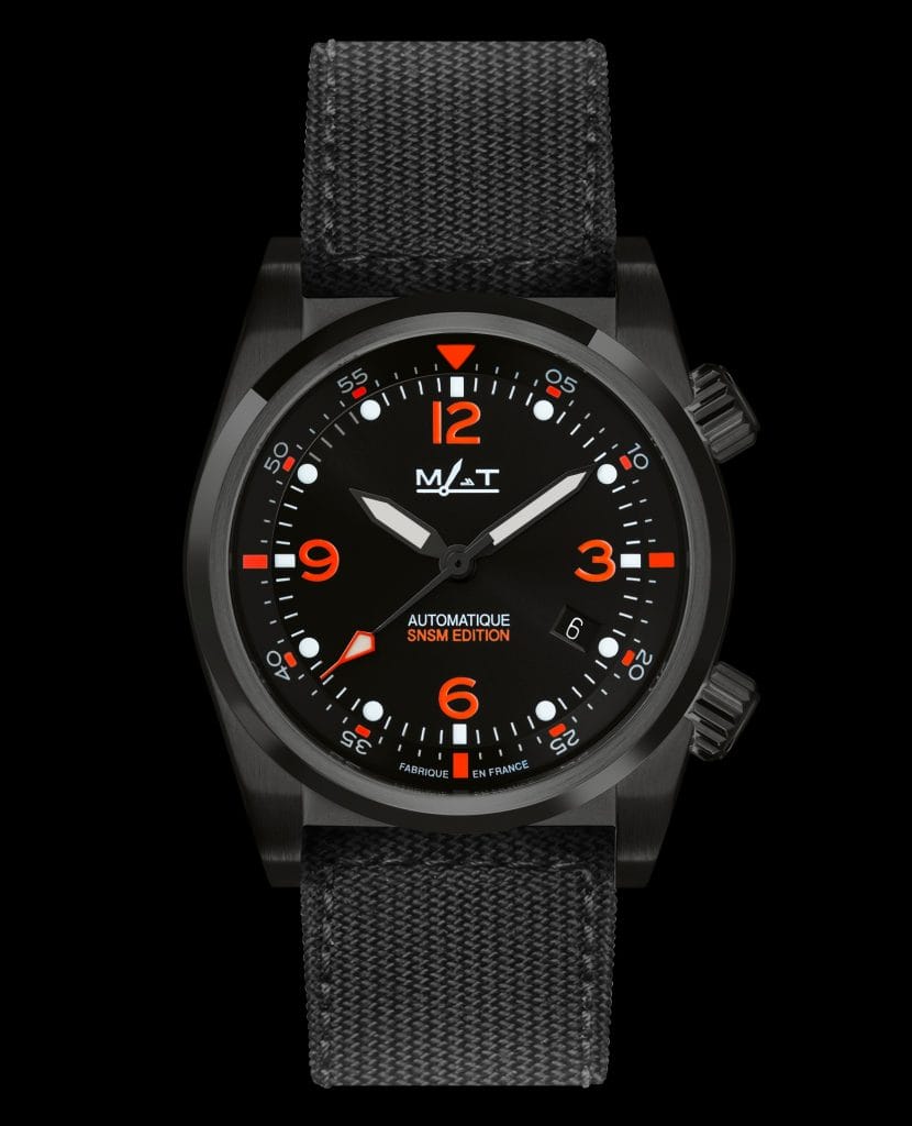 Le boitier de construction Compressor est équipé de 2 couronnes vissées intégrées à la carrure pour garantir une étanchéité et une robustesse optimales. Le remontoir à 4H permet de régler la montre tandis que la couronne à 2H actionne la lunette tournante interne. La montre SNSM dans sa livrée Black Edition se distingue par de fines touches orange pour une lisibilité optimale. Étanche à 200 mètres, mouvement automatique suisse, verre saphir bombé et pompes renforcées, cette montre outil est à la fois technique et racée. D’un diamètre de 42,5mm, cette montre nautique est équipée d’un bracelet caoutchouc orange à fermoir déployant ainsi que d’un strap en canvas noir facilement interchangeable à l’aide de l’outil fourni. Son écrin très résistant est fabriqué en cuir recyclé noir et zip orange arborant l’emblème de la SNSM et saura vous accompagner dans vos missions du quotidien. Cette série est proposée à 1850€ en Edition Limitée de 300 pièces. Pour chaque montre vendue, MATWATCHES s’engage à verser 10% à l’association des Sauveteurs en Mer.