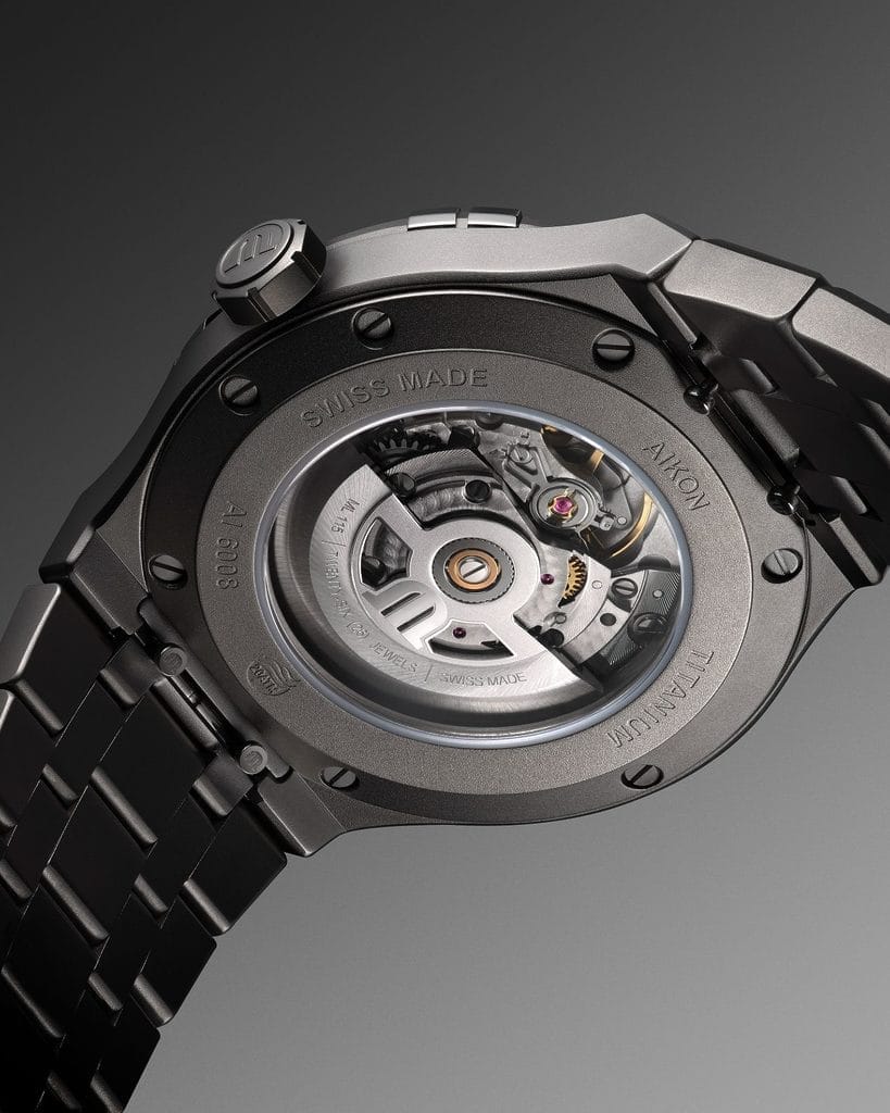 Le titane est très utilisé dans les domaines du sport automobile et de l’aérospatiale, pour son mélange rare de robustesse et de légèreté. Il s’est également imposé dans le secteur maritime grâce à sa remarquable résistance à la corrosion marine. En outre, ses propriétés hypoallergéniques le rendent particulièrement adapté au monde médical. Ces qualités exceptionnelles se retrouvent dans l’AIKON Automatic 42 mm et l’AIKON Automatic Chronograph 44 mm, faisant du titane un alliage aux multiples vertus.