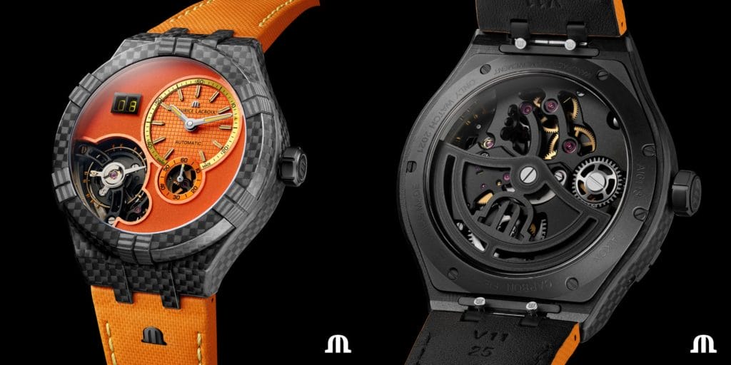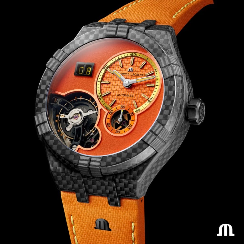 C’est la première fois que Maurice Lacroix présente un exemplaire en fibre de carbone de sa collection couronnée de succès, AIKON. La montre qui en résulte est légère et arbore un style contemporain.