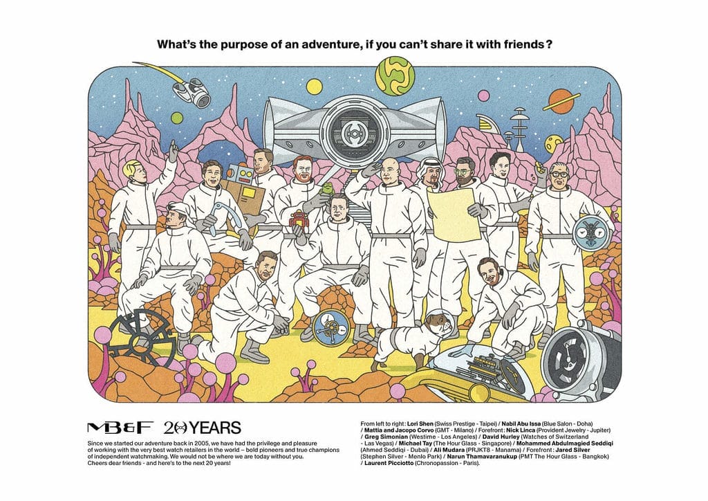 Dès ses débuts, MB&F a valorisé ses « Friends », détaillants et partenaires visionnaires, qui ont cru en un projet incertain. The Hour Glass, Chronopassion ou Seddiqi furent parmi les premiers à parier sur Max Büsser, permettant le lancement d’une aventure hors norme.