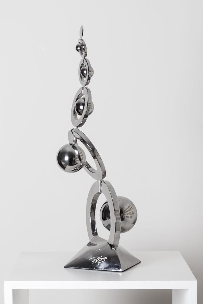 Ralfonso est un incontournable de la sculpture cinétique, comme en attestent ses nombreuses œuvres ayant trouvé place dans des collections permanentes à travers le monde. Opérant à mi-chemin entre l’ingénierie et l’art, Ralfonso transcende la sculpture au sens classique en ajoutant à ses œuvres du mouvement : « Art in Motion » !