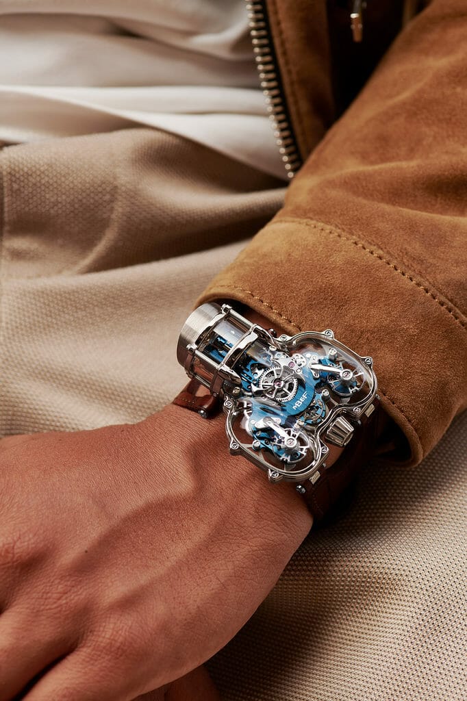 Malgré une apparence étonnante, le fondateur de MB&F Maximilian Büsser définissait le moteur de la HM9 comme « le plus beau mouvement maison jamais créé à ce jour ». Quelle suite logique fallait-il lui offrir, si ce n’est de le loger dans une coque en verre saphir transparent ?
