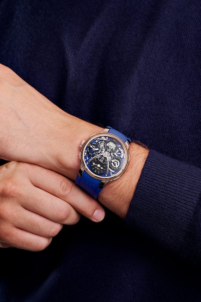 - Limitée à 18 pièces, en or rose 18 carats, avec cadran bleu océan.