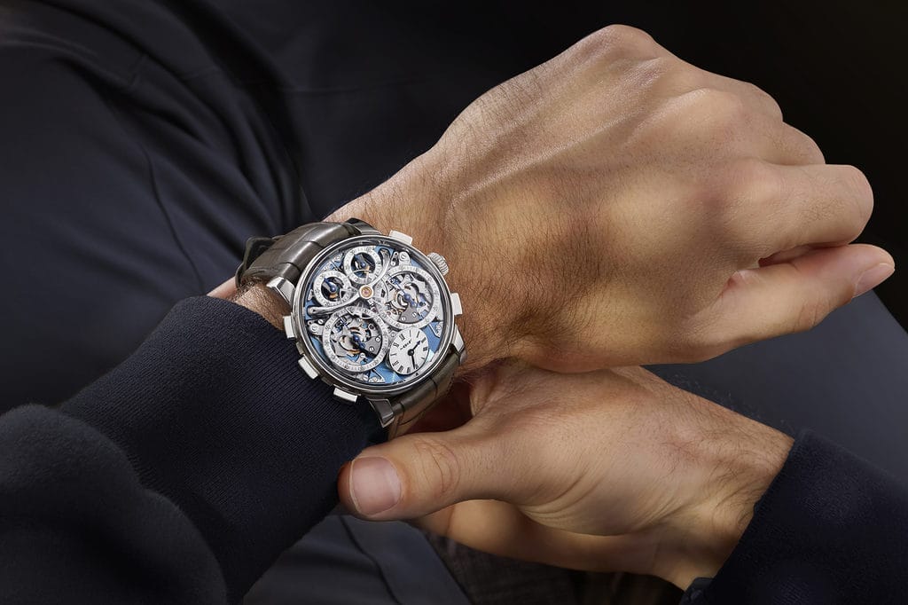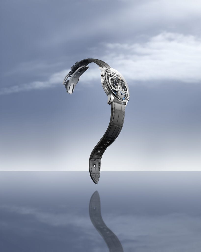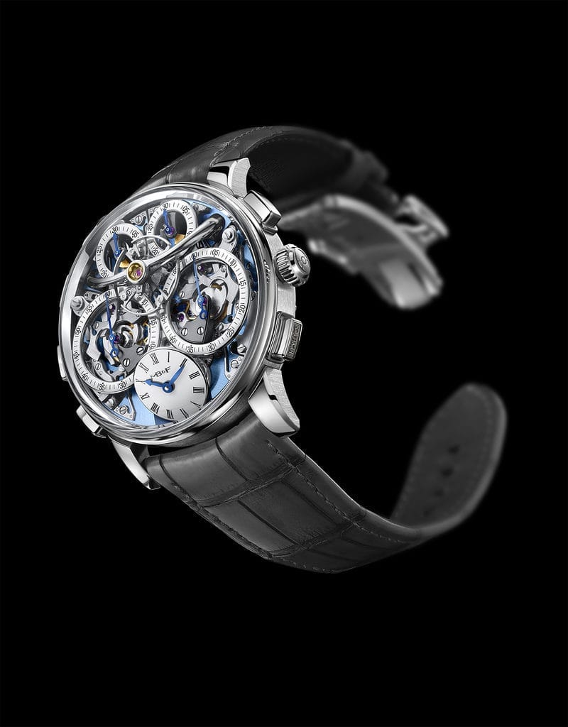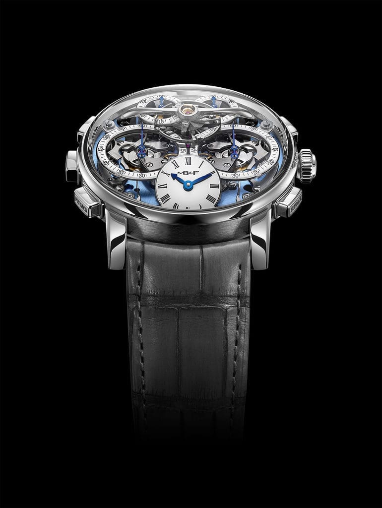 La Legacy Machine Sequential Flyback fait l’objet d’une édition de lancement en platine, avec platine-cadran bleu ciel limitée à 33 pièces.