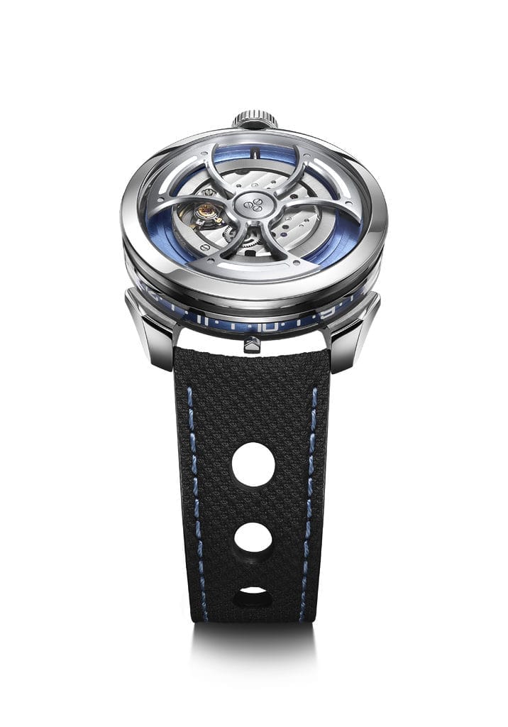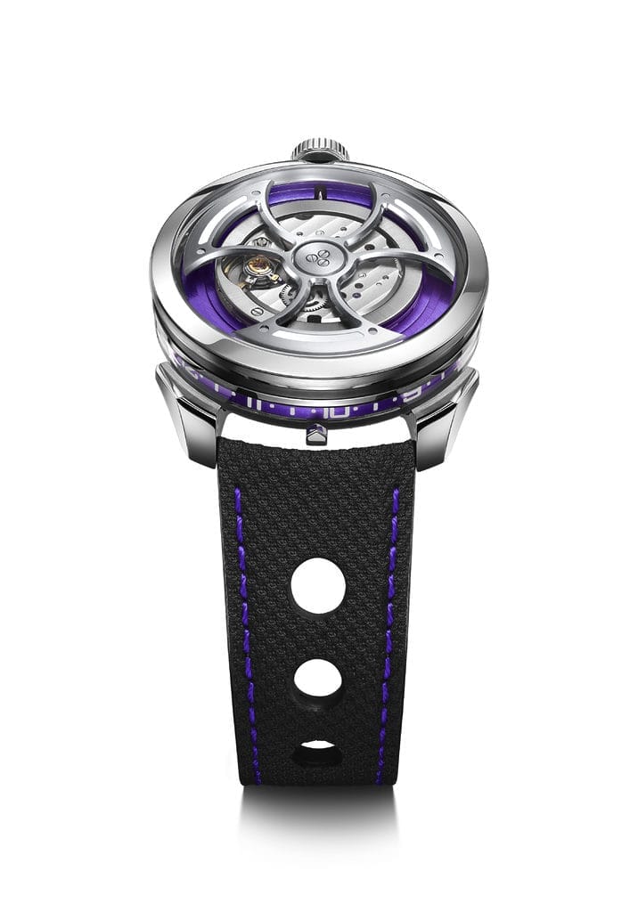 Fidèle aux origines de la M.A.D.1 et à l’idée de remercier une précieuse communauté, la M.A.D.1S reprend le code couleur précédemment établi. La M.A.D.1S sera proposée aux « Friends » (fournisseurs) et aux membres de la « Tribe » (collectionneurs MB&F) dans une série limitée avec des touches de violet sur le cadran. Pour le public qui plébiscite les M.A.D.Editions dans leurs nombreuses variations, la M.A.D.1S fera son entrée avec des touches bleu métallique.
