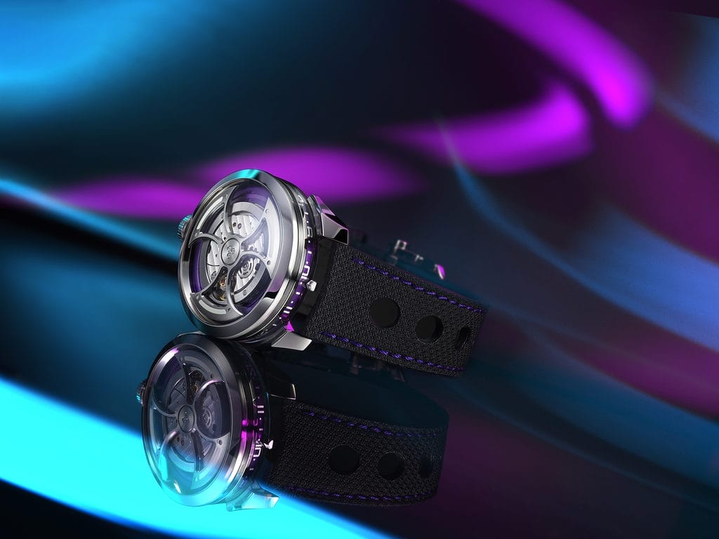 Fidèle aux origines de la M.A.D.1 et à l’idée de remercier une précieuse communauté, la M.A.D.1S reprend le code couleur précédemment établi. La M.A.D.1S sera proposée aux « Friends » (fournisseurs) et aux membres de la « Tribe » (collectionneurs MB&F) dans une série limitée avec des touches de violet sur le cadran. Pour le public qui plébiscite les M.A.D.Editions dans leurs nombreuses variations, la M.A.D.1S fera son entrée avec des touches bleu métallique.