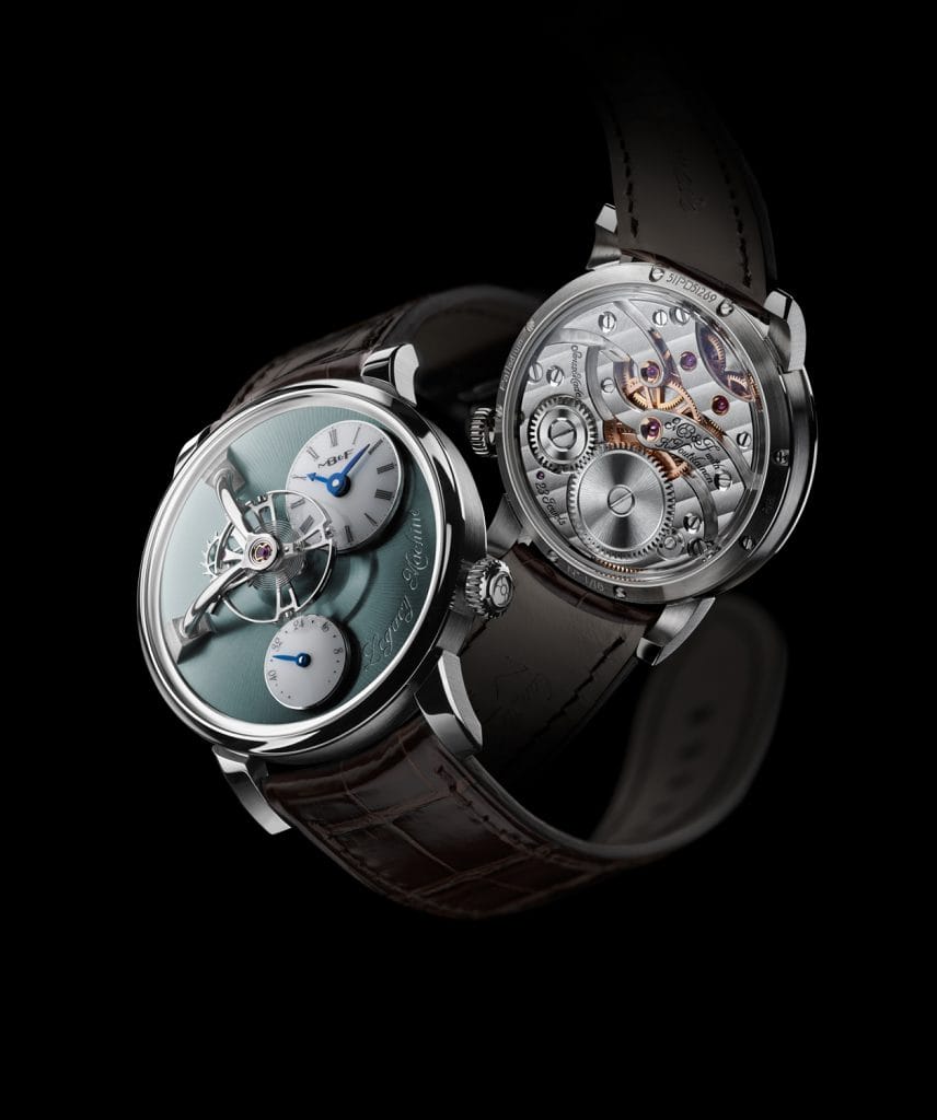 Alors que le mouvement a été entièrement développé en interne, c’est le célèbre maître horloger Kari Voutilainen qui a pris la responsabilité d’assurer la justesse historique du design des ponts et des finitions raffinées du mouvement. La LM101 a d’abord été lancée en or rose ainsi qu’en or blanc 18 carats, puis en deux éditions limitées ‘Frost’ avec finition grenée (respectivement 18 et 33 pièces), suivies d’une édition limitée de 33 pièces en platine 950. La dernière-née de la série est la LM101 Palladium, limitée à 18 pièces.