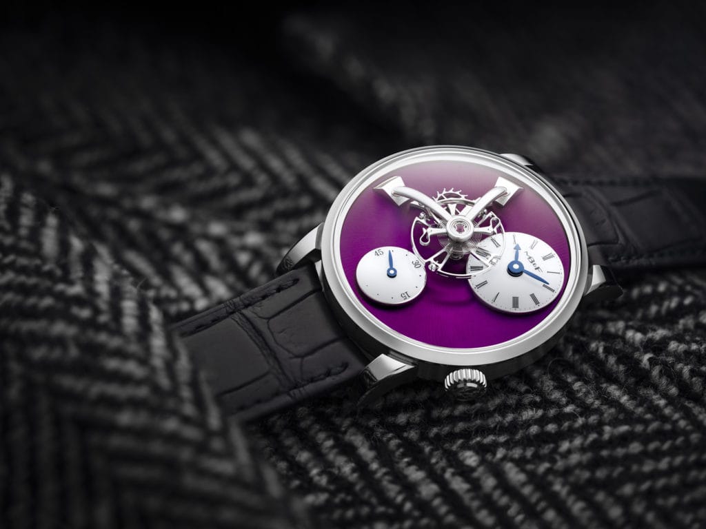 La LM101 a d’abord été lancée en or rose ainsi qu’en or blanc 18 carats, puis en deux éditions limitées ‘Frost’ avec finition grenée (18 et 33 pièces), suivies d’une édition limitée de 33 pièces en platine 950 et de 18 pièces en palladium. Les nouvelles versions de 2021 sont disponibles en or blanc 18 carats avec un cadran violet, en or rose 18 carats 5N+ avec un cadran bleu roi et en acier avec un cadran bleu clair.