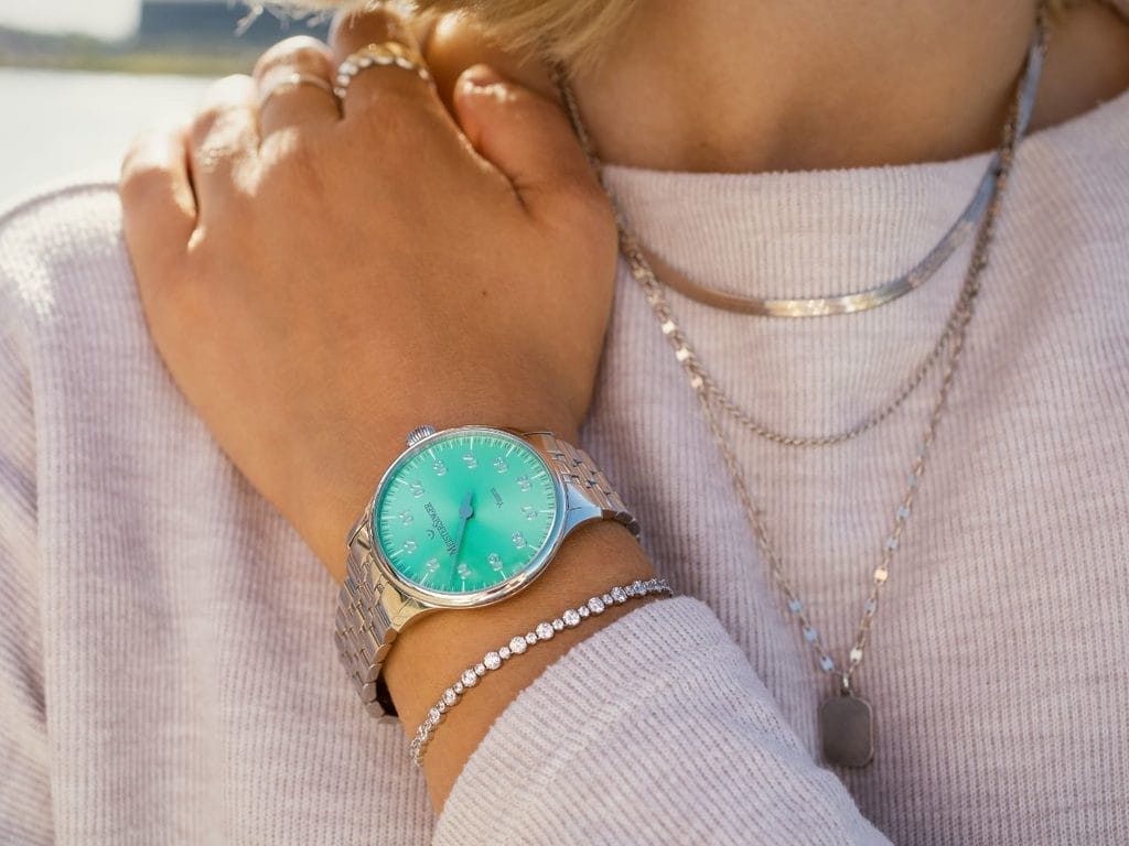 Cette philosophie liée aux montres MeisterSinger n’est évidemment pas (seulement) masculine. La marque horlogère le souligne aujourd’hui clairement en introduisant cette toute nouvelle collection pour femmes : Yaara.