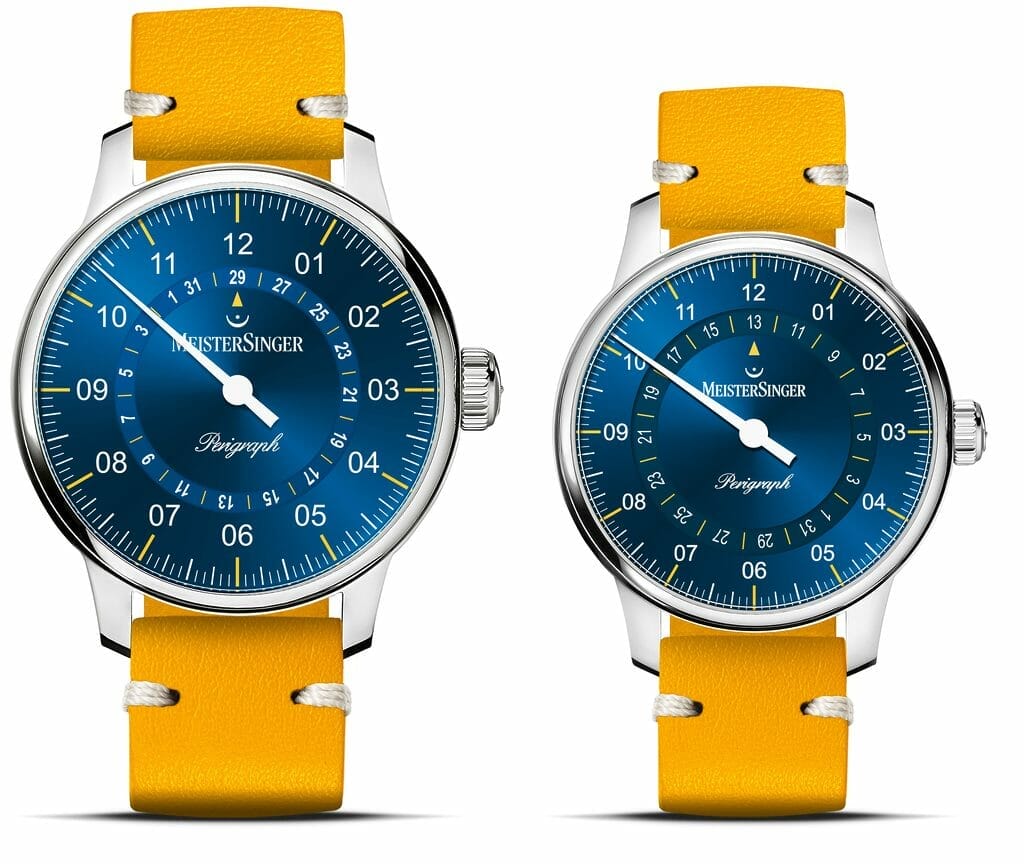 Offrant une lecture alternative de l’heure par ses montre à mono-aiguille, MeisterSinger accompagne l’arrivée imminente de l’été indien en introduisant une série limitéede son modèle Perigraph. Distinctif par son disque de date ouvert à 360°, audacieuse par son bracelet en cuir vintage d’un jaune vif, ce garde-temps automatique est proposé en deux tailles de diamètre : 38 mm et 43 mm. Chacune est éditée à 100 exemplaires pour le monde.