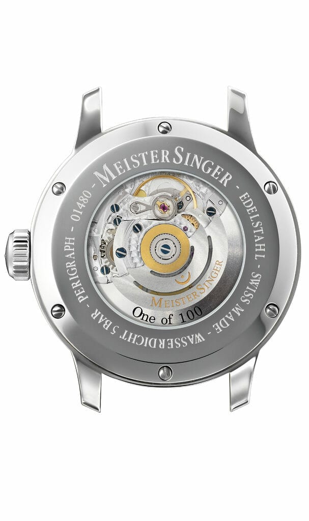 Gravée sur le verre, l’inscription X/100 souligne l’exclusivité du modèle. Pour renforcer son caractère unique, un nom, une dédicace ou un message personnel peut-être également gravé, à l’identique de la majorité des pièces MeisterSinger. Cette montre devient d’autant plus précieuse aux yeux de son porteur.