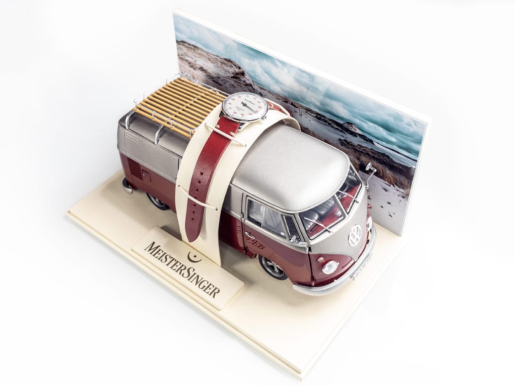Modèle à succès lancé depuis plus de dix ans par la marque horlogère allemande MeisterSinger, la Neo arrive aujourd’hui dans une édition spéciale, limitée à 100 pièces. Sa particularité ? Présenté dans un écrin avec la réplique miniature d’un VW T1 restomod, minibus compact légendaire dévoilé par le constructeur automobile Volkswagen en 1950 , ce garde-temps automatique en partage non seulement les couleurs mais aussi cette combinaison réussie d’esthétique nostalgique et d’innovation contemporaine.