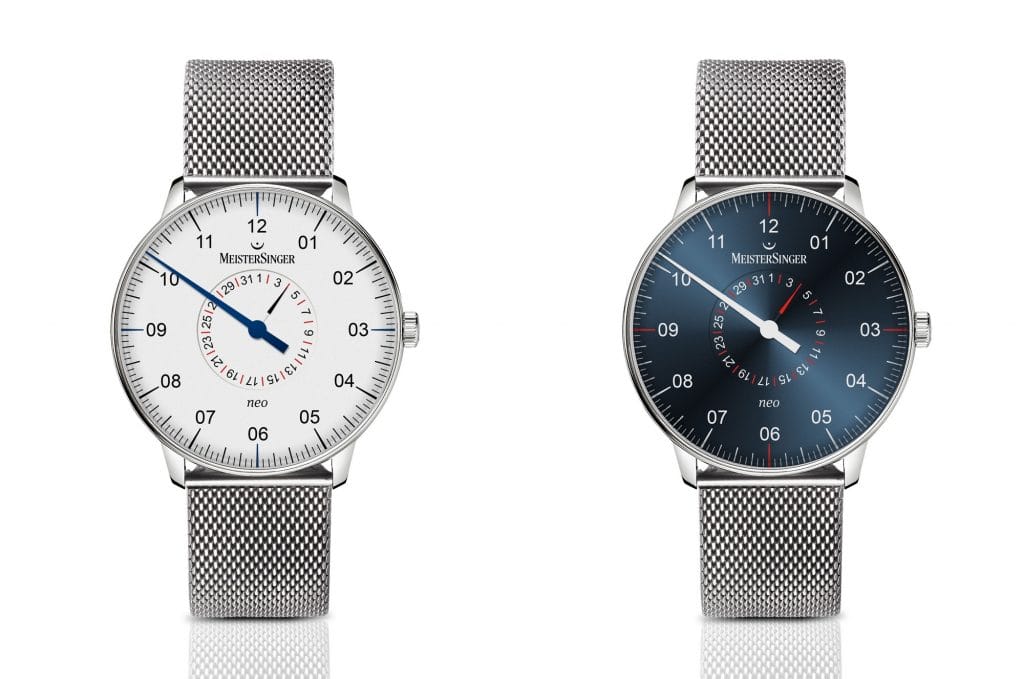 La marque horlogère allemande MeisterSinger, spécialiste des montres à mono-aiguille, introduit, dans sa collection Neo, un nouveau modèle baptisé Neo Pointer Date. Restant fidèle au design des fifties, ce garde-temps se singularise de la pièce d’origine par une présentation différente de la date. A l’identique de son apparition dans les premières montres bracelet, celle-ci est indiquée par une aiguille.