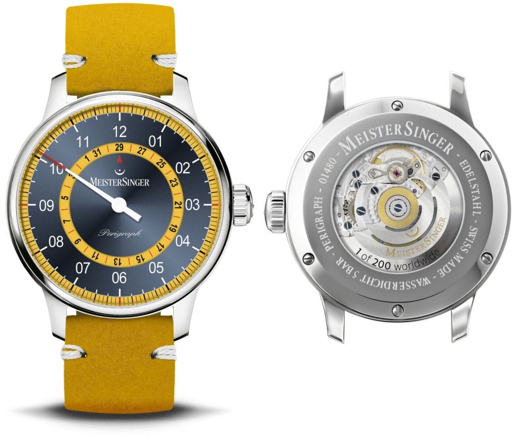 (Re)connu pour ses garde-temps à mono-aiguille, MeisterSinger célèbre ses 20 ans en 2021. A cette occasion, la marque horlogère allemande annonce l’arrivée de son modèle Perigraph dans une nouvelle livrée particulièrement audacieuse. Habillée d’un jaune lumineux mettant en lumière un disque de date ouvert, cette montre automatique est éditée en série limitée à 200 exemplaires pour le monde.