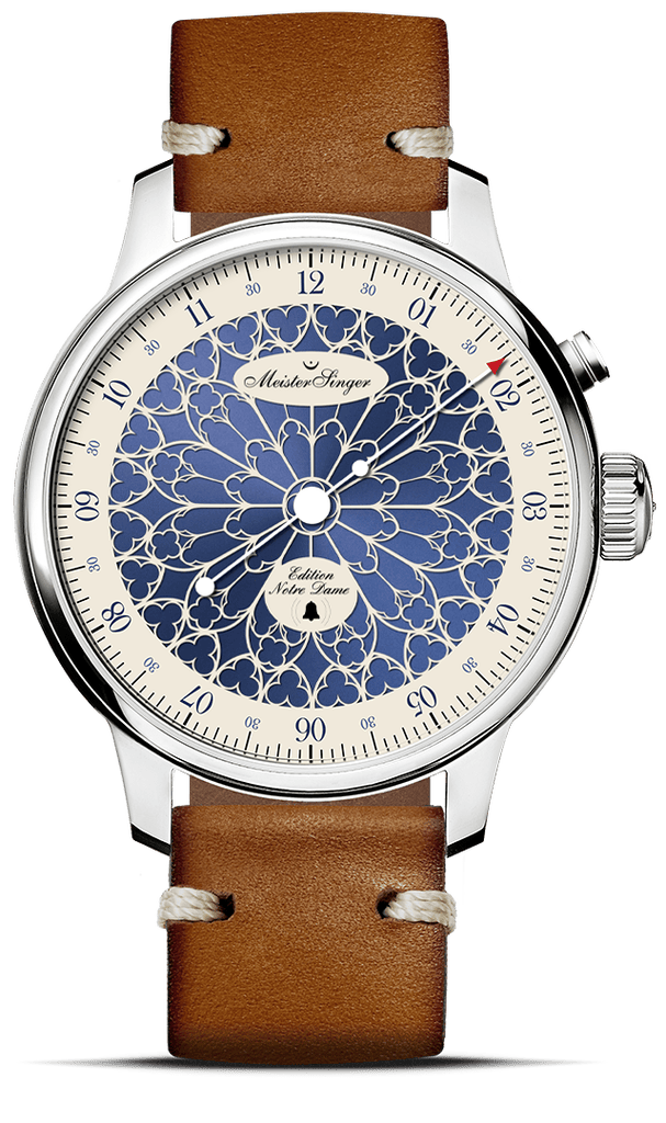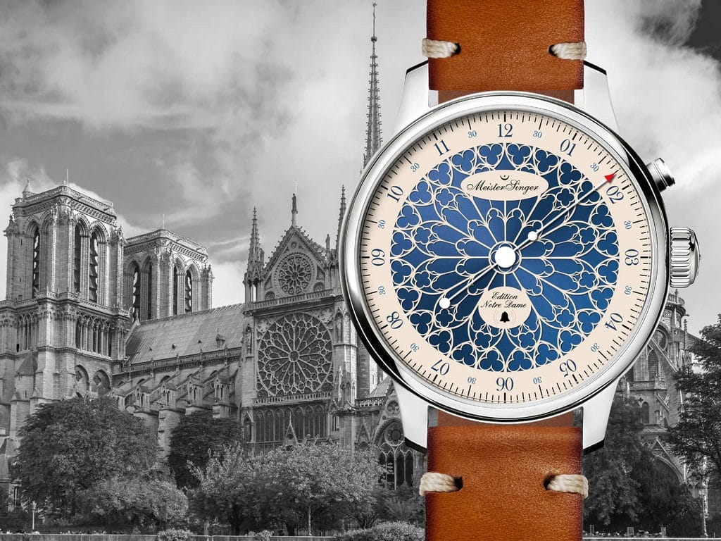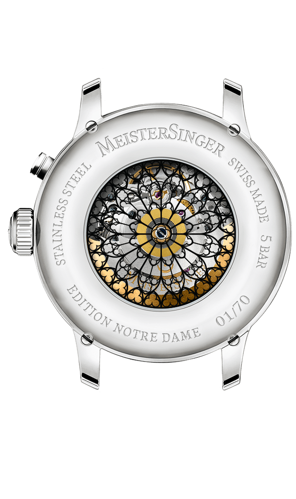 Depuis sa construction au XIVe siècle, Notre-Dame de Paris est un symbole majeur de la capitale et de la nation française, attirant chaque année plus de 10 millions de visiteurs du monde entier. Après l’incendie tragique d’avril 2019, qui a dévasté une grande partie de la toiture, y compris la flèche emblématique, d’importants travaux de restauration ont été entrepris et se termineront cette année. À l’occasion de la réouverture de ce monument exceptionnel le 8 décembre 2024, Manfred Brassler, fondateur et designer de MeisterSinger, a souhaité rendre hommage à Notre-Dame en concevant l’Edition Notre-Dame. « Nous avons conçu cette montre avec une attention particulière et un enthousiasme sincère afin qu’elle rende hommage à l’icône qui l’a inspirée. »