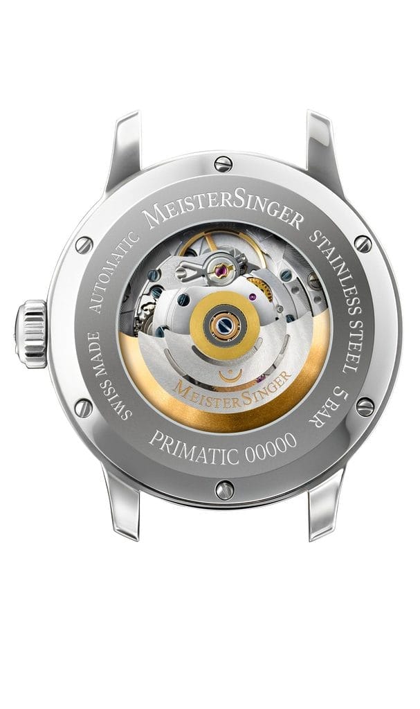 Comme les autres créations MeisterSinger, la Primatic 365 est animée par un mouvement suisse Sellita SW270, visible à travers le fond transparent. Ce mouvement automatique, alimenté par les mouvements du poignet, offre une réserve de marche de 38 heures et incarne la précision horlogère.