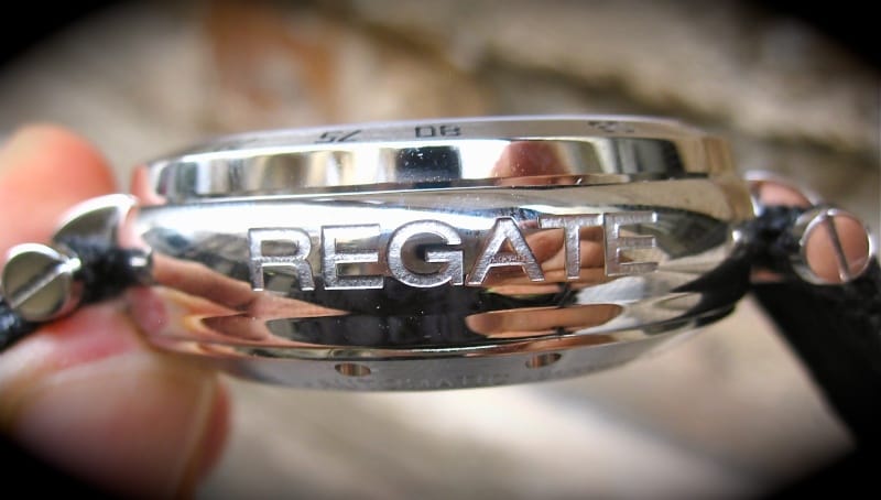 La gravure « Regate » présente sur la tranche de la boite accentue encore un peu plus l’identité de cette montre.