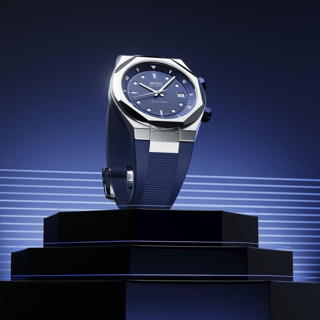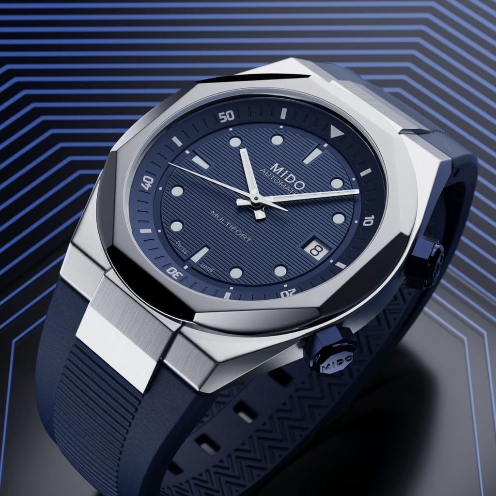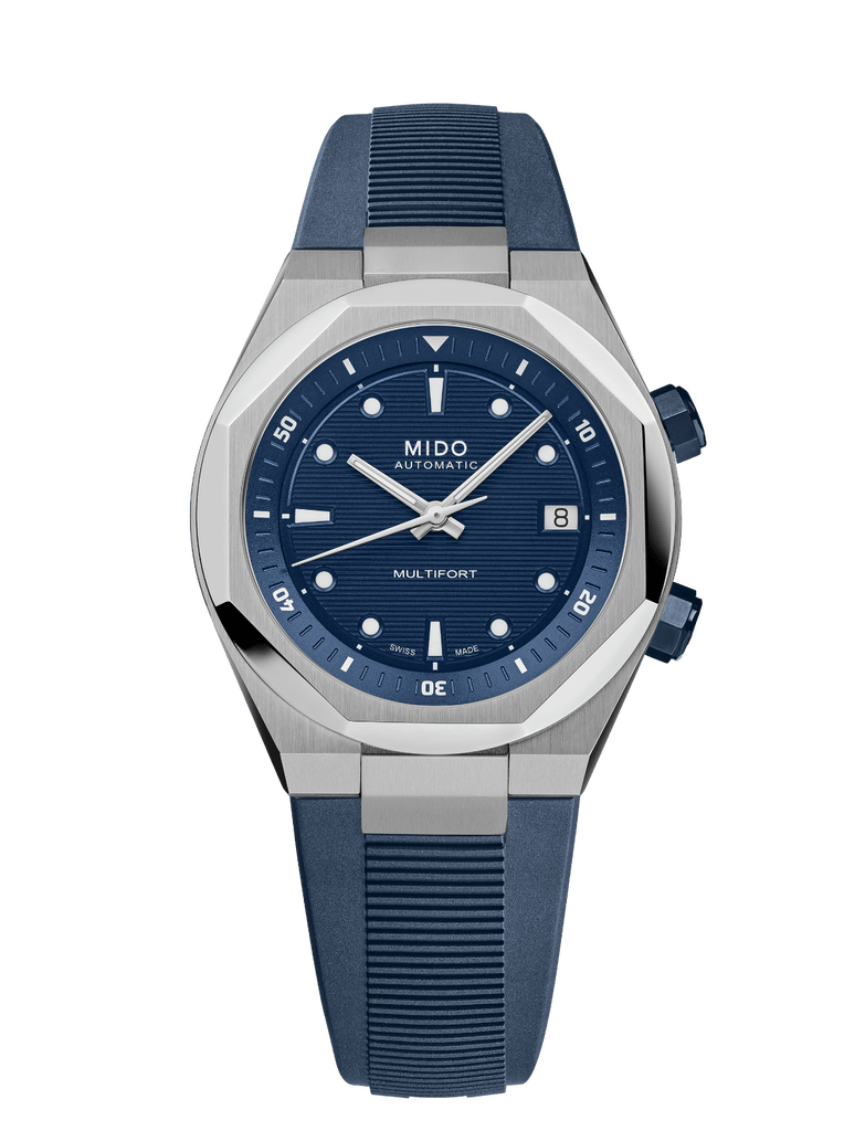 Parfait mix entre technologie et géométrie, Mido réinvente les codes et propulse la Multifort dans une nouvelle dimension, la technometry. Ici habillée de bleu profond et d’acier, avec sa lunette de forme octogonale, cette sportive visionnaire aux lignes pures et puissantes revisite une fonction Mido singulière, le réhaut tournant activé par une seconde couronne placée à 2 heures. Le temps, la matière et l’expertise horlogère fusionnent à l’infini avec élégance et précision.