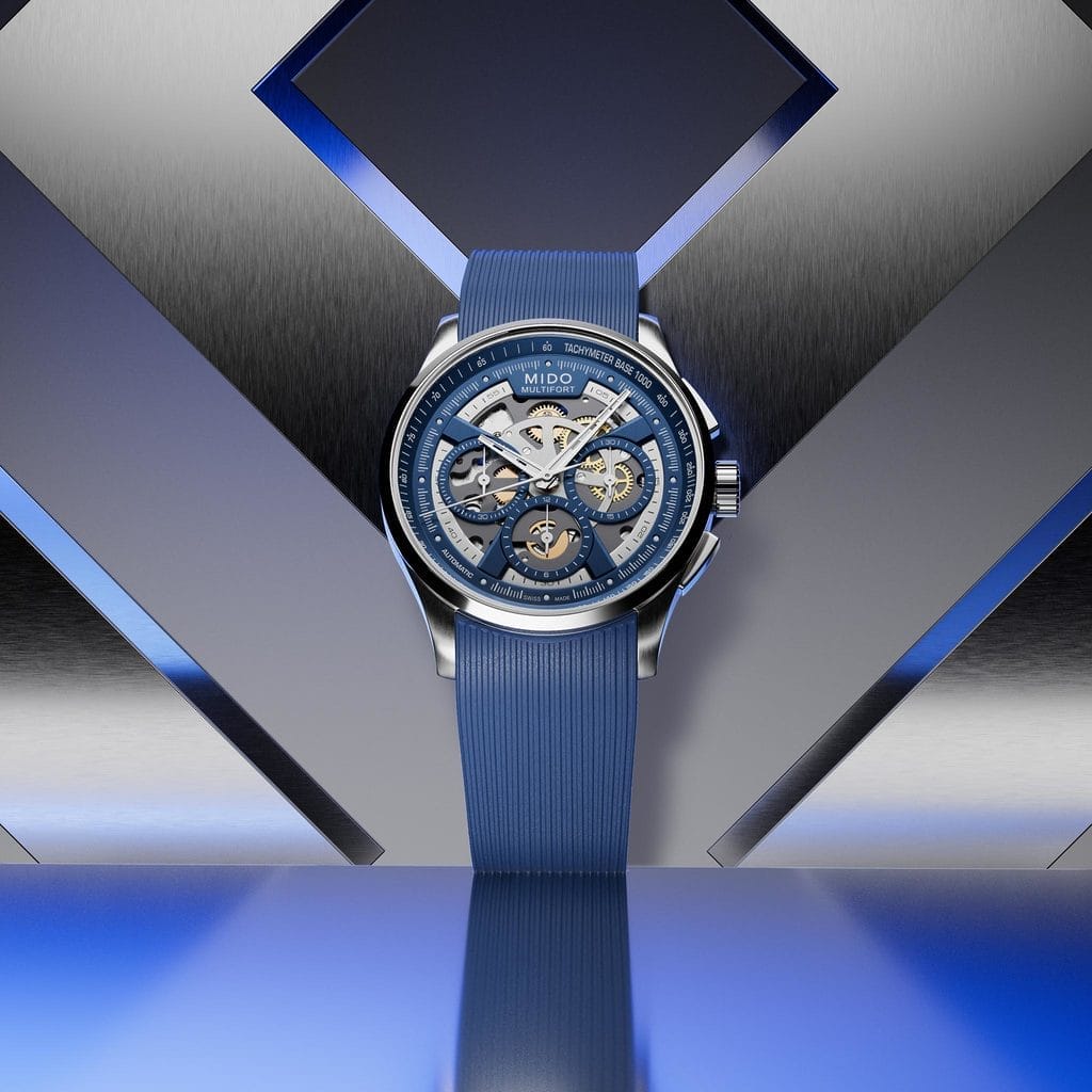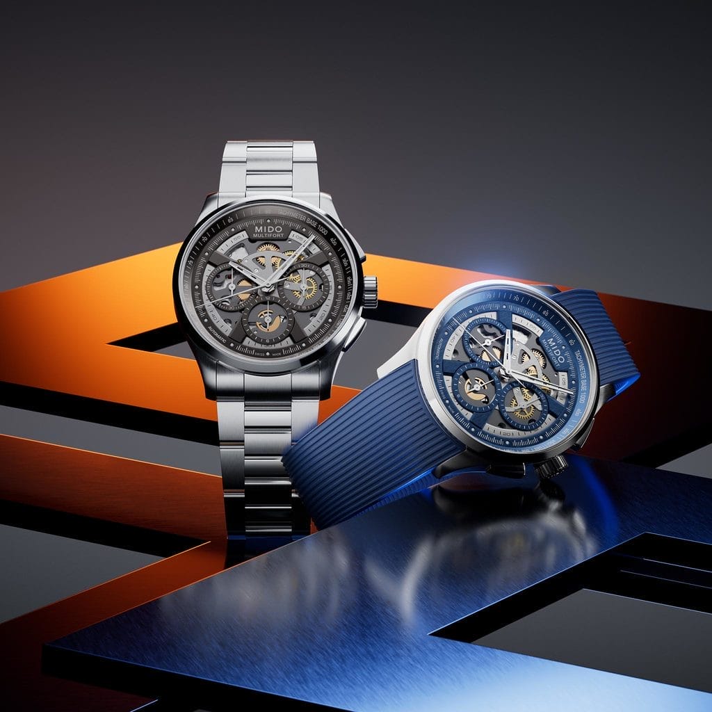 Seconde après seconde, la performance est maîtrisée. La Multifort Skeleton Chronograph entre en scène dans deux éditions inaugurales : une version en nuances de gris, l’autre animée par des touches de bleu. Cette création marque une première pour Mido, qui présente le Calibre 60 en version squelettée, doté d’un spiral en Nivachron, gage de précision et de fiabilité.