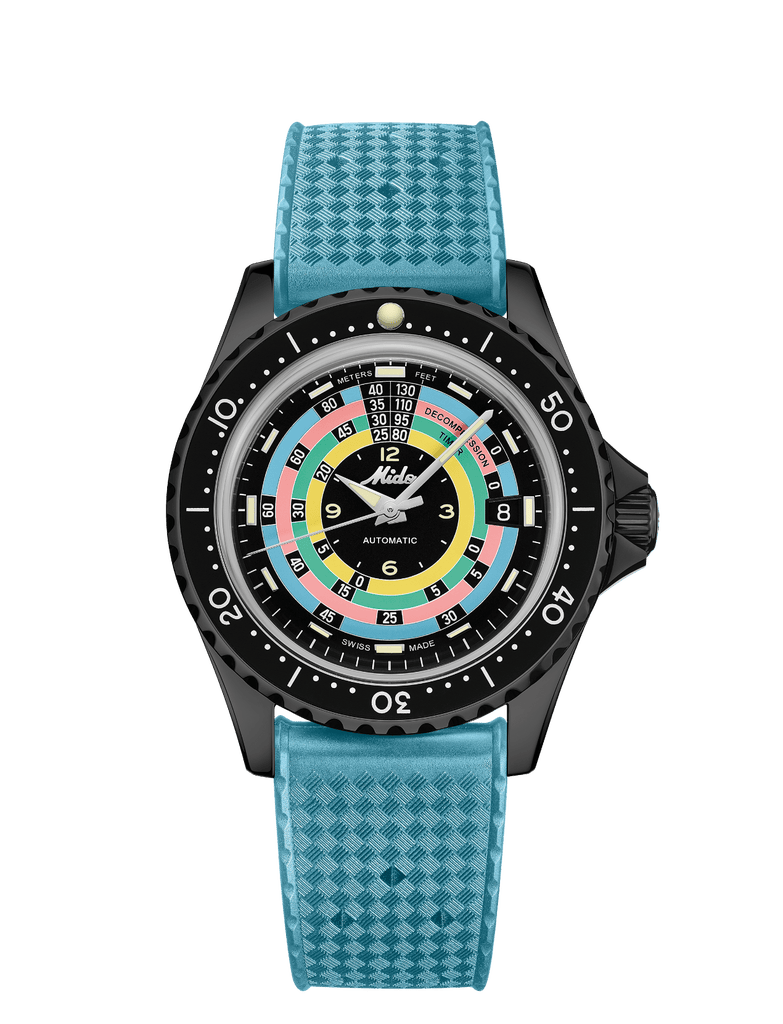 En 2020, MIDO créait l’évènement. La marque, précurseur en matière d’étanchéité depuis les années 1930, rééditait la célèbre Ocean Star Skin Diver Watch de 1961. Cette montre, extrêmement appréciée par les plongeurs d’alors, facilitait la lecture des paliers de décompression, grâce à une tabelle multicolore, rapidement devenue légendaire. Réinterprétée grâce à des matériaux extrêmement qualitatifs et des technologies à la pointe, l’Ocean Star Decompression Timer 1961 est restée fidèle à cette unique esthétique d’origine, se renouvellant avec succès au fil de plusieurs éditions, en 2020, 2021, puis 2023.