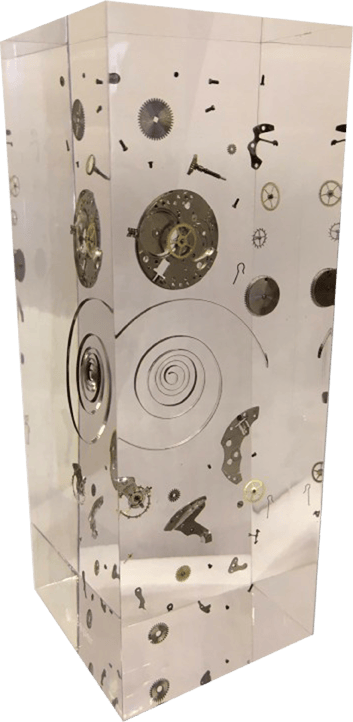 Vous êtes passionnés d’horlogerie et vous vous êtes toujours demandé combien il y avait de pièces dans un mouvement ? Vous êtes un malade des finition horlogères et vous avez toujours voulu les admirer de plus près ? KronoKeeper vous présente toute une collection de blocs en résine incluant des mouvements horlogers. Vous pourrez ainsi observer de plus près des mouvements des marques Tissot, Eterna, Girard Perregeaux, Zenith, IWC, Omega et bien d’autres encore. Assurément un cadeau à faire ou à se faire.