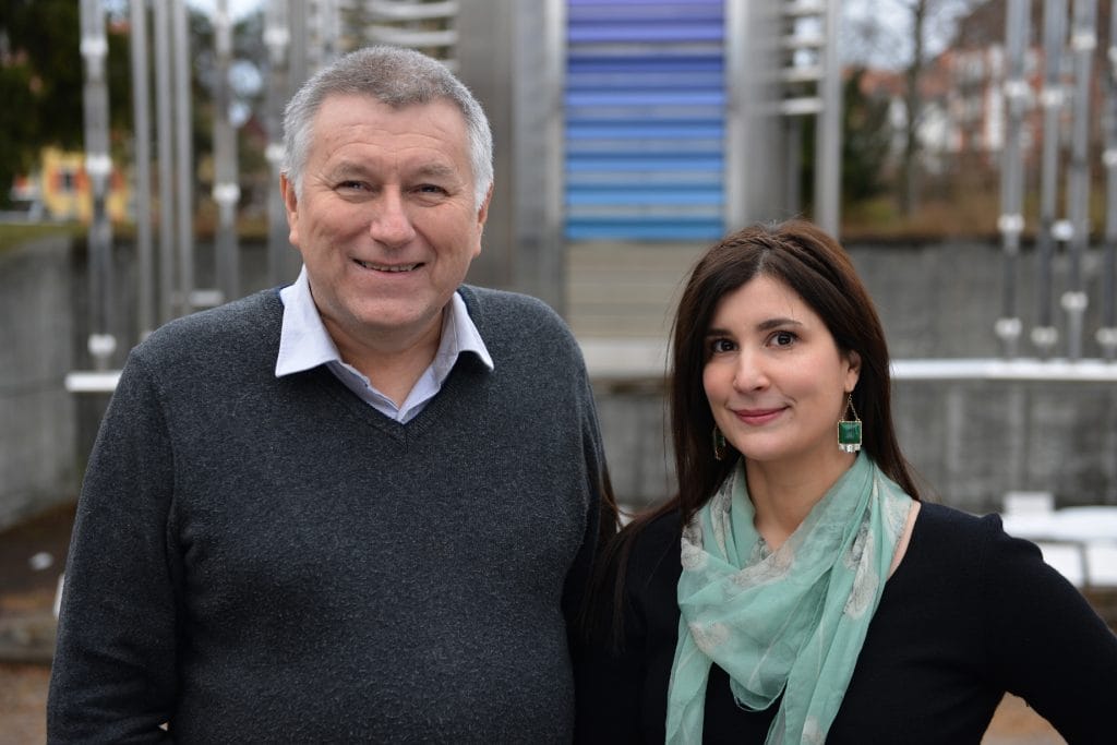 Jean-Michel Piguet et Nathalie Marielloni devant le Carillon du MIH. Ville de La Chaux-de-Fonds, A. Henchoz