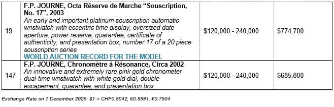 F.P.Journe et Philippe Dufour, maîtres incontestés de la vacation