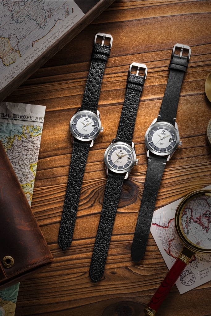 La polyvalence est également au cœur de la collection. Toute la gamme Antarctic Glacier est proposée avec une large sélection de bracelets interchangeables, cuir Racing, cuir classique, acier grains de riz, acier à maillons plats ou caoutchouc Tropic. De quoi faire évoluer la montre selon l’usage, sans jamais en trahir l’esprit.