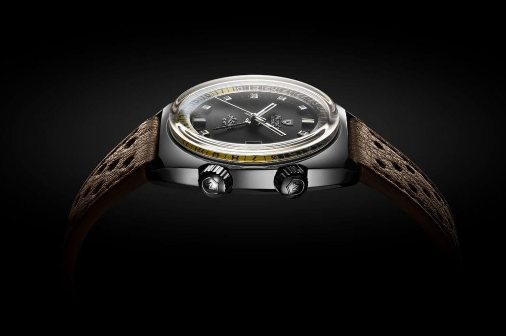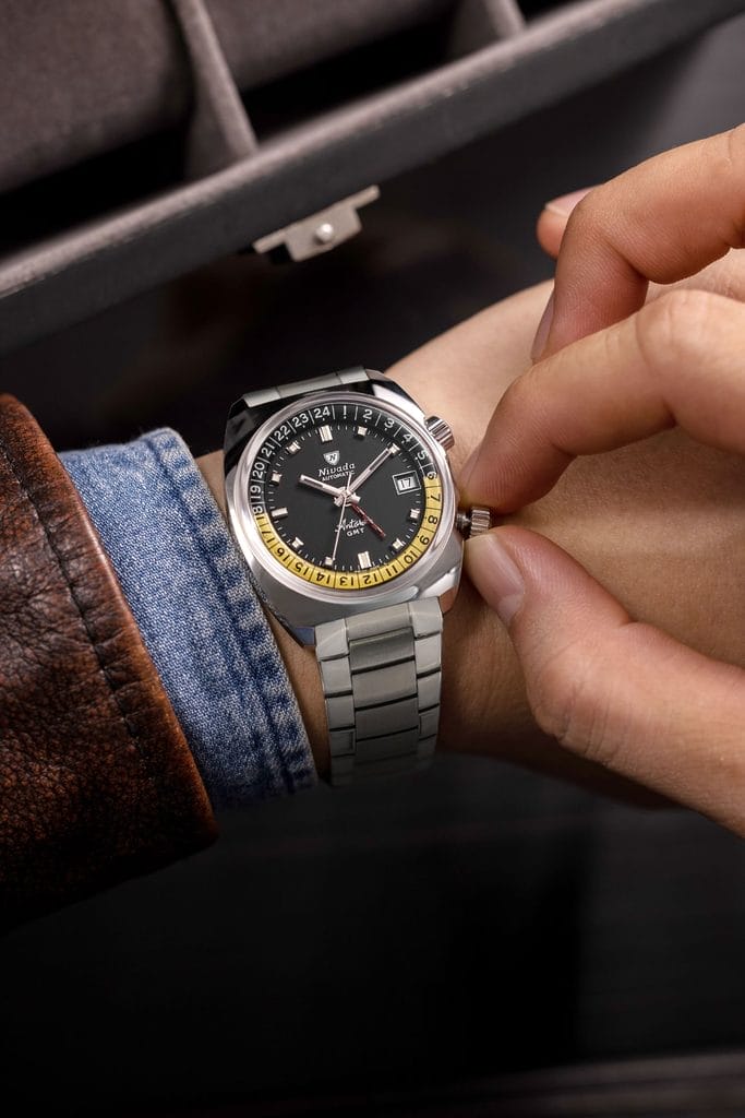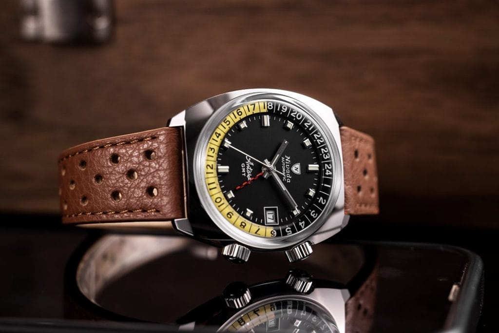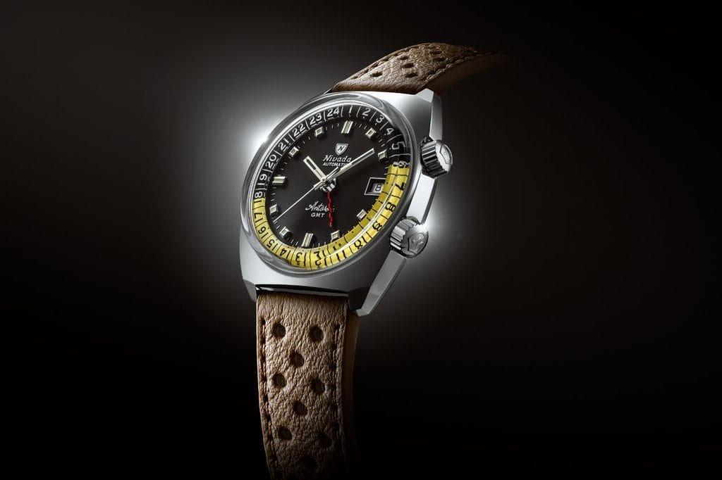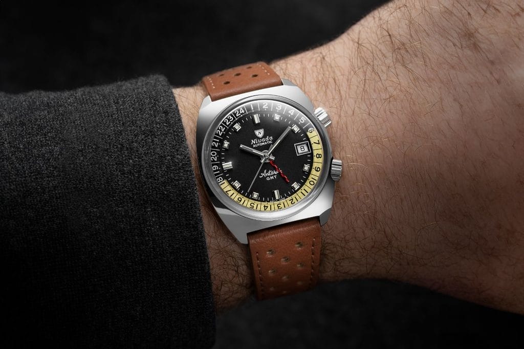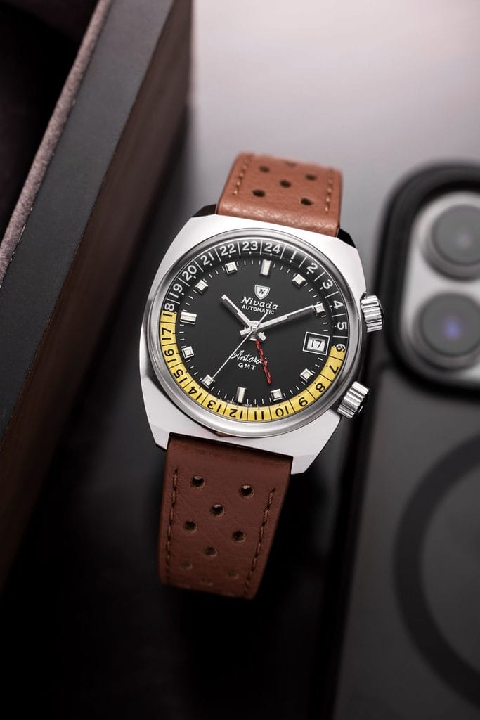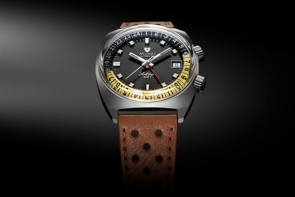 Un exemple notable est la Nivada Grenchen Antarctic GMT, une montre rare et chargée d’histoire. Guillaume Laidet, le PDG de la marque, a découvert ce modèle vintage en explorant les archives de Nivada et en consultant le Hodinkee Shop. Il a été immédiatement attiré par son esthétique inspirée des années 1970 et par sa complication GMT, qui enrichit la gamme Antarctic de la marque. Cette montre incarne le style rétro tout en intégrant des fonctionnalités modernes, un mariage parfait de l’authenticité et de l’innovation.