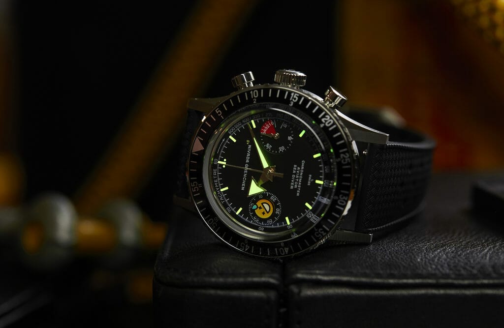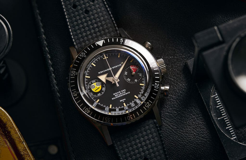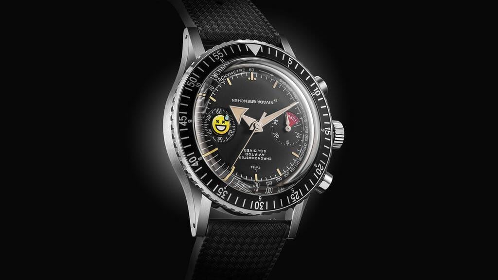 L’ovni Romaric André, alias seconde/seconde/ est venu perturber la collection CHRONOMASTER AVIATOR SEA DIVER de Nivada Grenchen. Sa pirouette graphique pop-minimaliste a encore frappé.