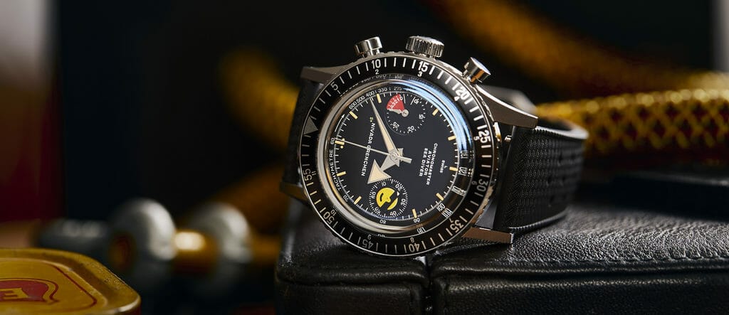 Les montres Nivada Grenchen font partie du paysage horloger suisse depuis 1926, année où Jacob Schneider a fondé la marque à Granges (Grenchen en suisse-allemand). En 1976, son fils Max a repris l’entreprise. Aux États-Unis, la Croton Company était le distributeur officiel de toutes les montres Nivada Grenchen, ce qui explique que certains garde-temps portent la signature Croton. En 1930, Nivada Grenchen a été l’une des premières entreprises à fabriquer des montres automatiques. Le Chronomaster a été un des plus gros succès Nivada Grenchen jusqu’à la fin des années 1970. La marque suisse était en effet reconnue pour ses performances et sa fiabilité dans des conditions extrêmes. C’est en 1963 que la première montre Chronomaster, un chronographe étanche jusqu’à 200 mètres, voit le jour. Et c’est en 2018, après des années de sommeil et sous l’impulsion de Guillaume Laidet, que la marque renaît avec ses deux modèles iconiques dont La fameuse Chronomaster Aviator Sea Diver.