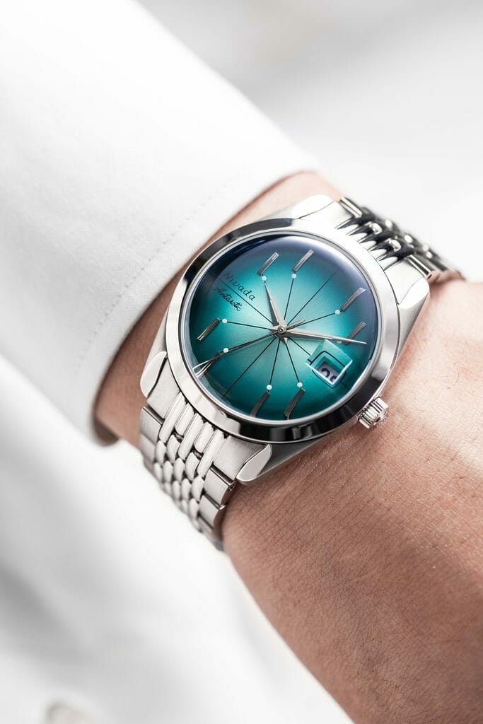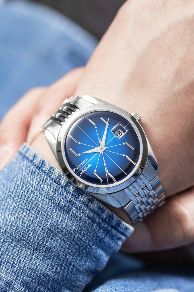 Avec son cadran Art-Déco, le design de la Spider est certainement l’un des plus audacieux de la marque. Elle est le fruit d’une variante un peu folle de l’Antarctic, produite par Nivada Grenchen dans les années 70.