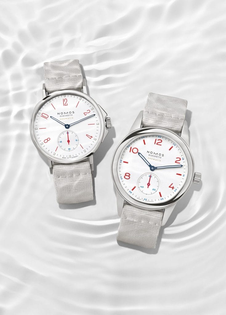 Que ce soit sur ou sous le pont, près de la piscine ou dedans, sur une planche de surf, un yacht ou une chaise longue : les deux nouveaux modèles Aqua en provenance de NOMOS Glashütte sont les compagnons idéals pour cet été (et même pour après). La série à succès Aqua de la société allemande d’horlogerie s’agrandit avec de nouvelles montres pour l’eau en blanc sirène, mues par le calibre très précis neomatik de NOMOS. Ces deux garde-temps automatiques sont basés sur les modèles Club et Ahoi.