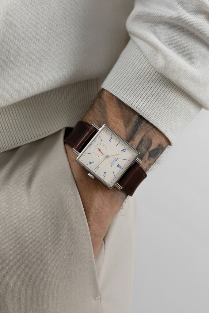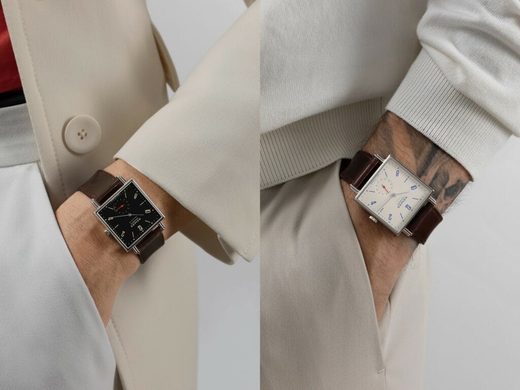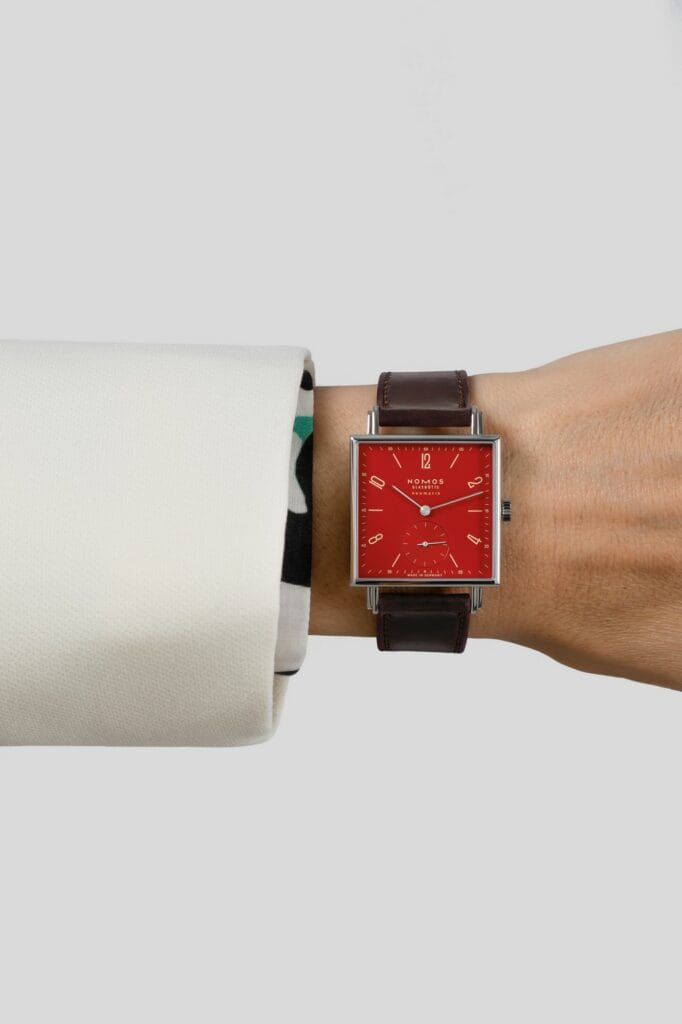 L’été démarre sur les chapeaux de roues chez NOMOS Glashütte avec une édition limitée dans une catégorie à part : des modèles basés sur la Tetra, grande classique de NOMOS, désormais plus large et passionnément colorée. Haute couture plutôt que prêt-à-porter. Très visible, et pourtant agréable à regarder. Parce que le mieux n’est pas toujours l’ennemi du bien. Quatre montres carrées dans les couleurs vives off white, red, blue et black, chacune possédant son propre contraste entre aiguilles et chiffres qui parvient non seulement à unir des mondes, mais aussi des visions du monde. Le style maximaliste au service du minimalisme. Du travail d’artiste !