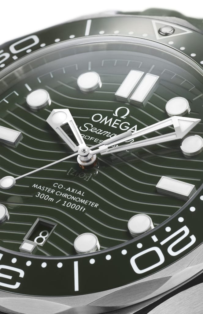 En 2022, la montre qui a fait surface pour la première fois en 1993, est de retour, plus audacieuse que jamais, avec un cadran orné d’un motif vagues décliné dans une étonnante nuance verte. Cette montre de 42 mm en acier inoxydable est dotée d’une lunette tournante unidirectionnelle en céramique verte polie avec échelle de plongée en émail Grand Feu blanc. Cette superbe nouvelle Seamaster Diver 300M à cadran en céramique verte polie est également entraînée par le calibre OMEGA Co-Axial Master Chronometer 8800 avec finitions luxe spéciales.